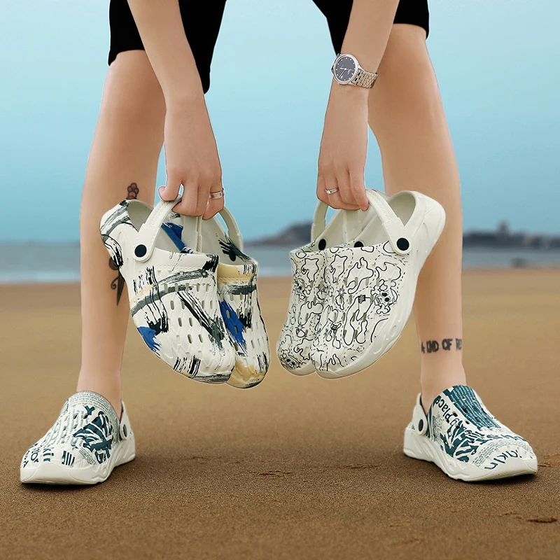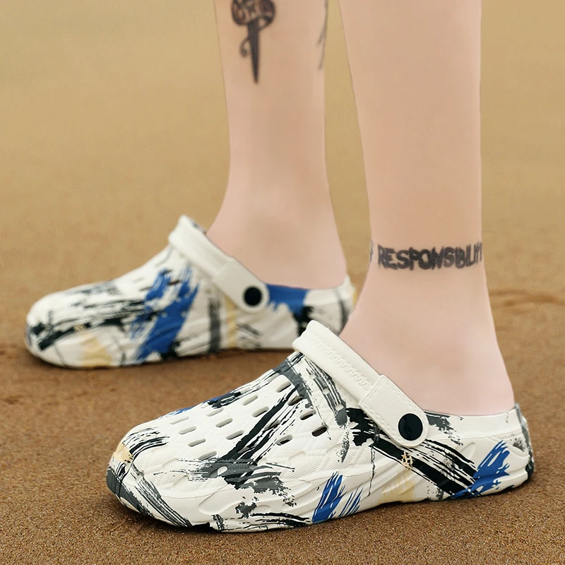 Мужские пляжные сандалии из ЭВА, мягкие тапки для улицы, без застежки, клоги, повседневные, для прогулок и сада, лето 2021