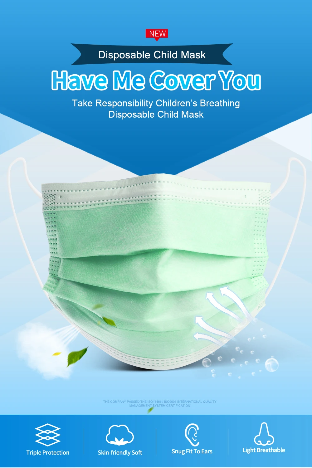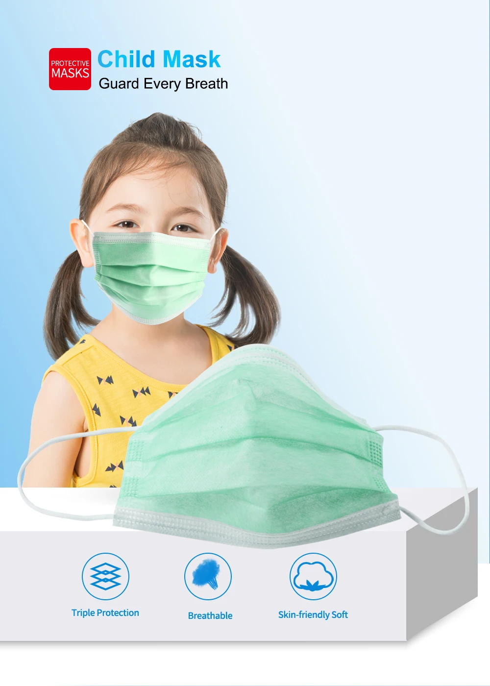 3-слойный одноразовые детские маскиОсобенности:Гипоаллергенный, высокая фильтрация, емкость.Чистый и полезный.Эластичные петли для ушей без давления на уши.Изготовлены из нетканого материала, они отличаются хорошей устойчивостью к коже и удобны в носке.