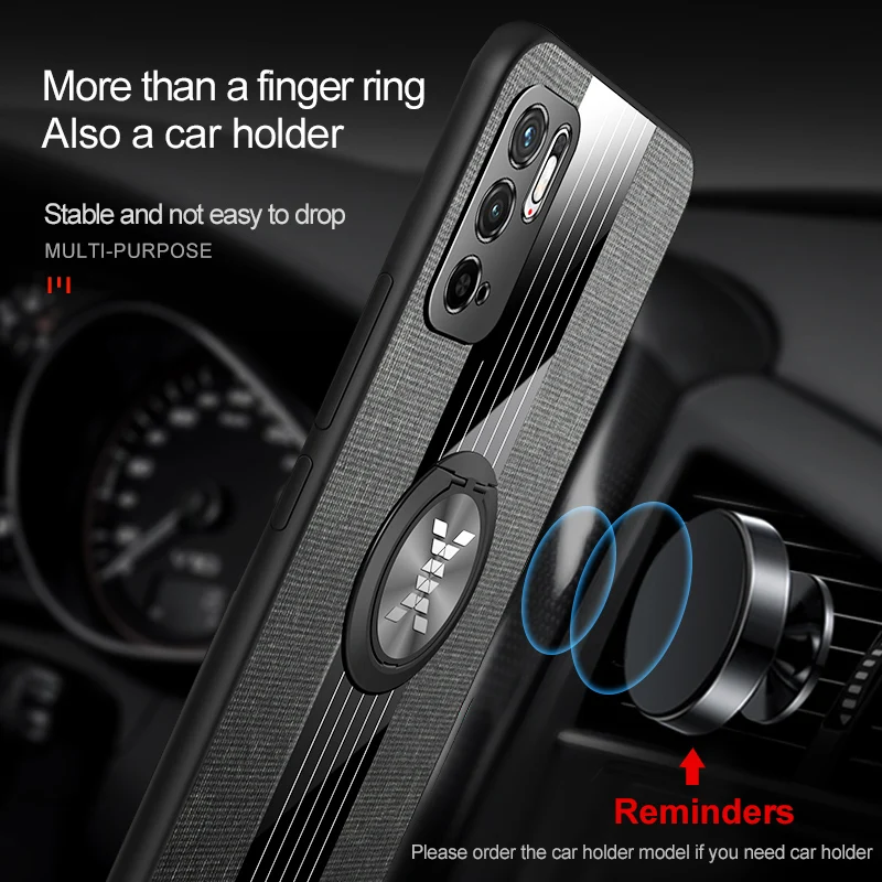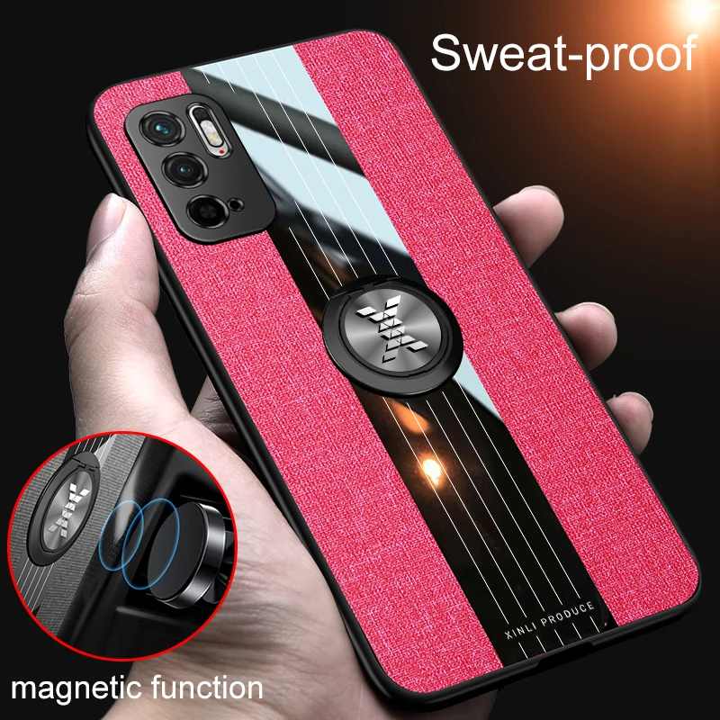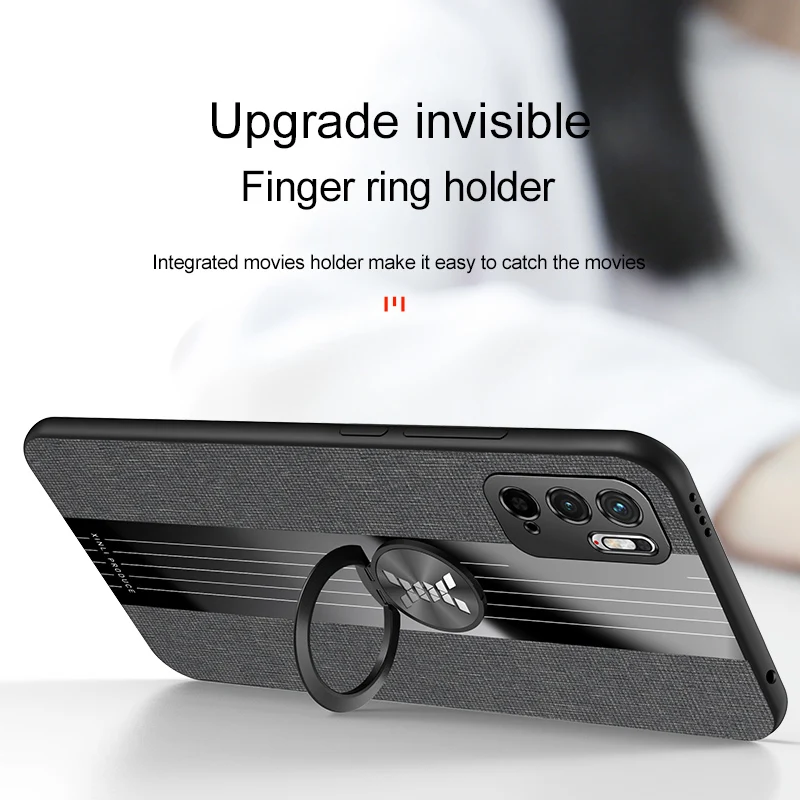 Чехол с кольцом-держателем для POCO X3 Pro, тканевая текстура, твер...