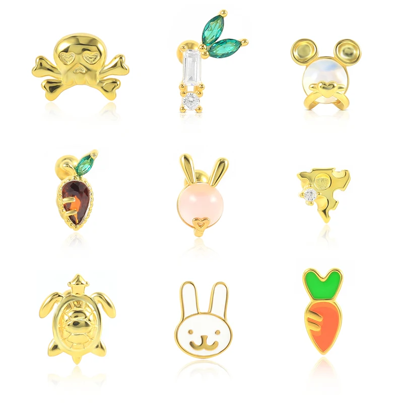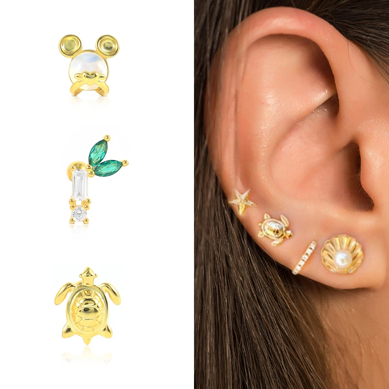Женские серьги из серебра 925 пробы, в виде панды, кролика, моркови, мыши, черепахи, Серьги Для Пирсинга Ушей