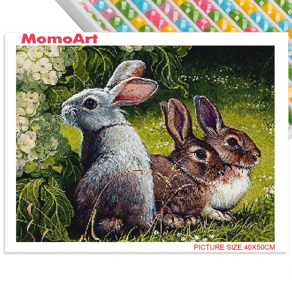 Квадратная Алмазная вышивка MomoArt, картина с животными, кролик, фото для дома