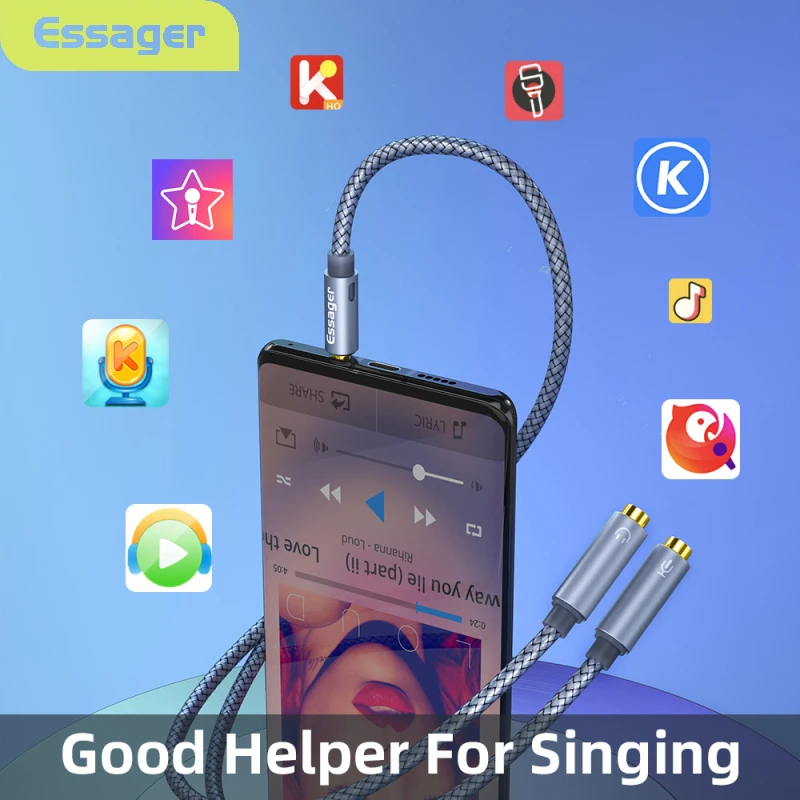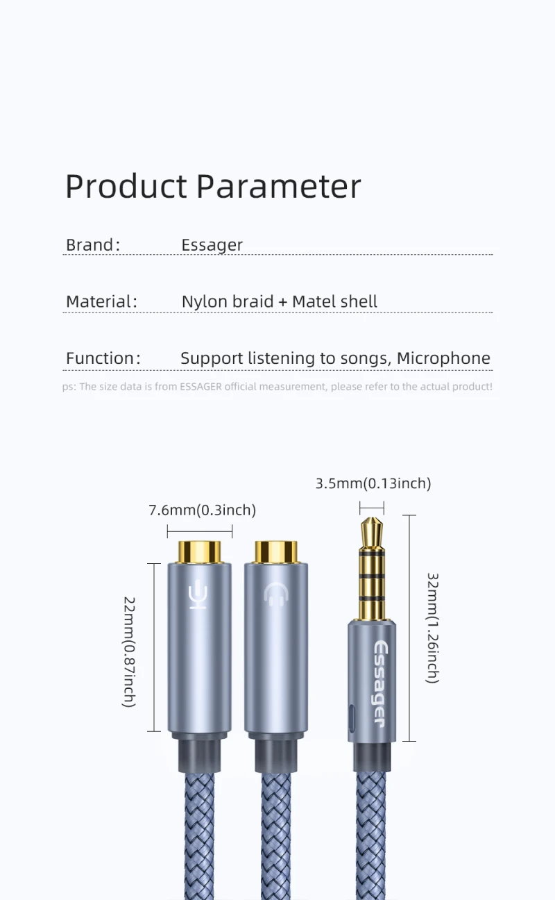 Кабель Essager Audio сплиттер для наушников, расширение гарнитуры, штекер 3,5 мм, Y-образный адаптер для телефона, ПК, AUX-кабель