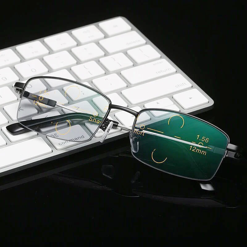 Металлические титановые прогрессивные Мультифокальные очки для чтения для мужчин и женщин с защитой от сисветильник пресбиопические очки с полуоправой высокое качество