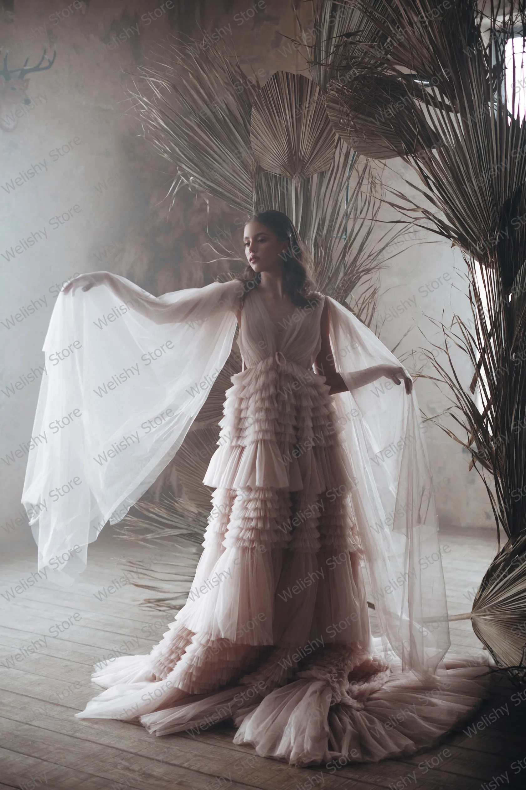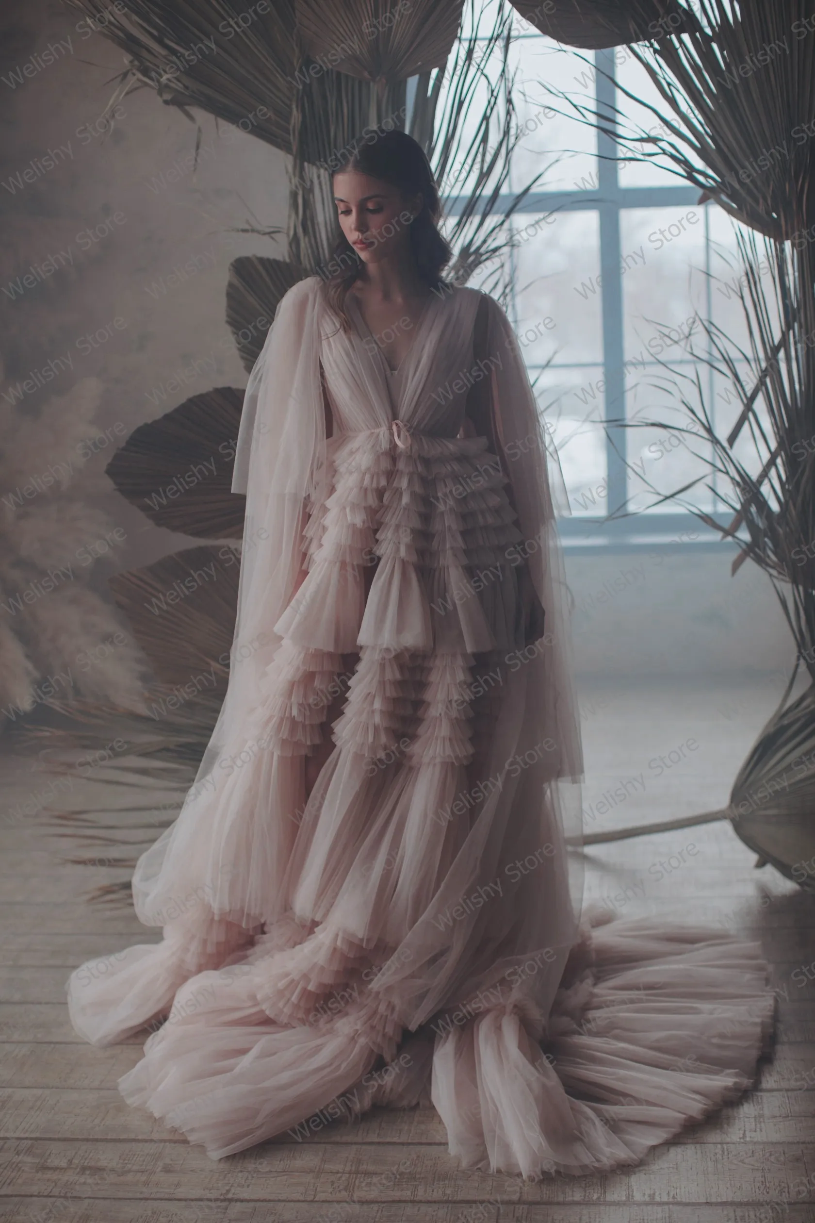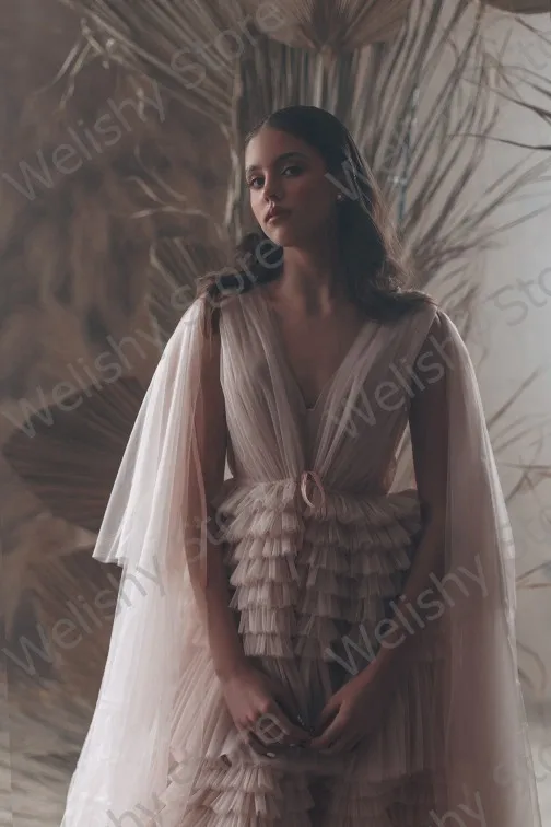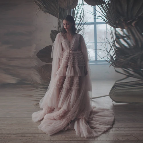 Очаровательное длинное фатиновое платье для женщин, халаты для бере...