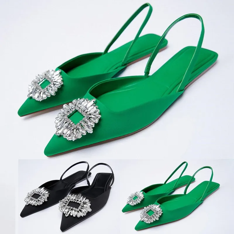 Женские туфли с ремешком на пятке, с острым носком, на плоской подошве