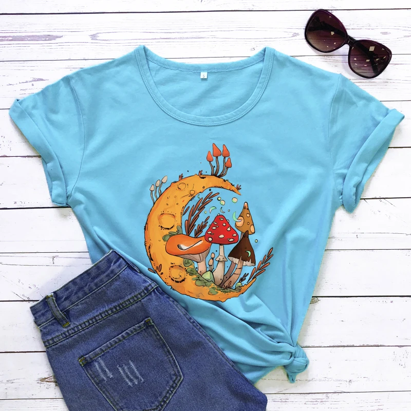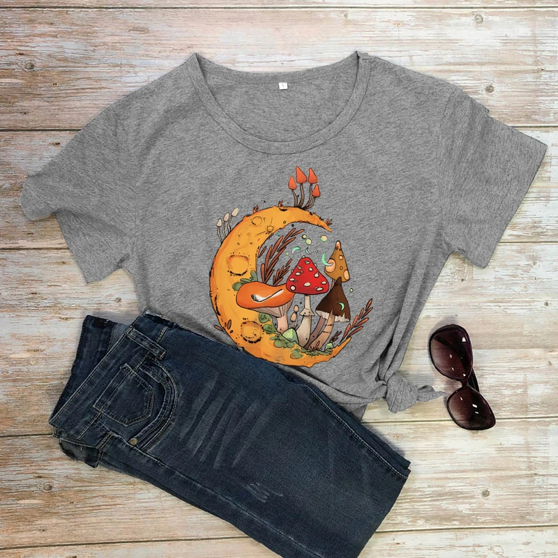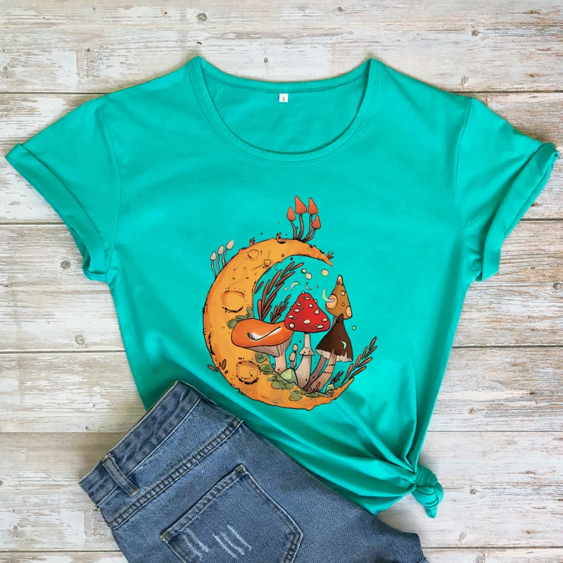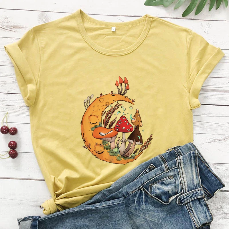 Футболка женская в стиле ретро с изображением Луны и волшебных грибов