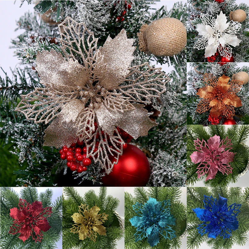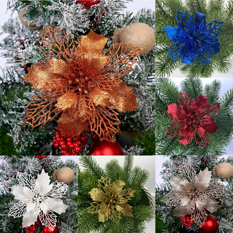 5 шт. блестящие Искусственные Рождественские цветы LuanQI, подвеска на рождественскую елку, рождественские украшения для дома, Рождественское украшение, Новогодний подарок