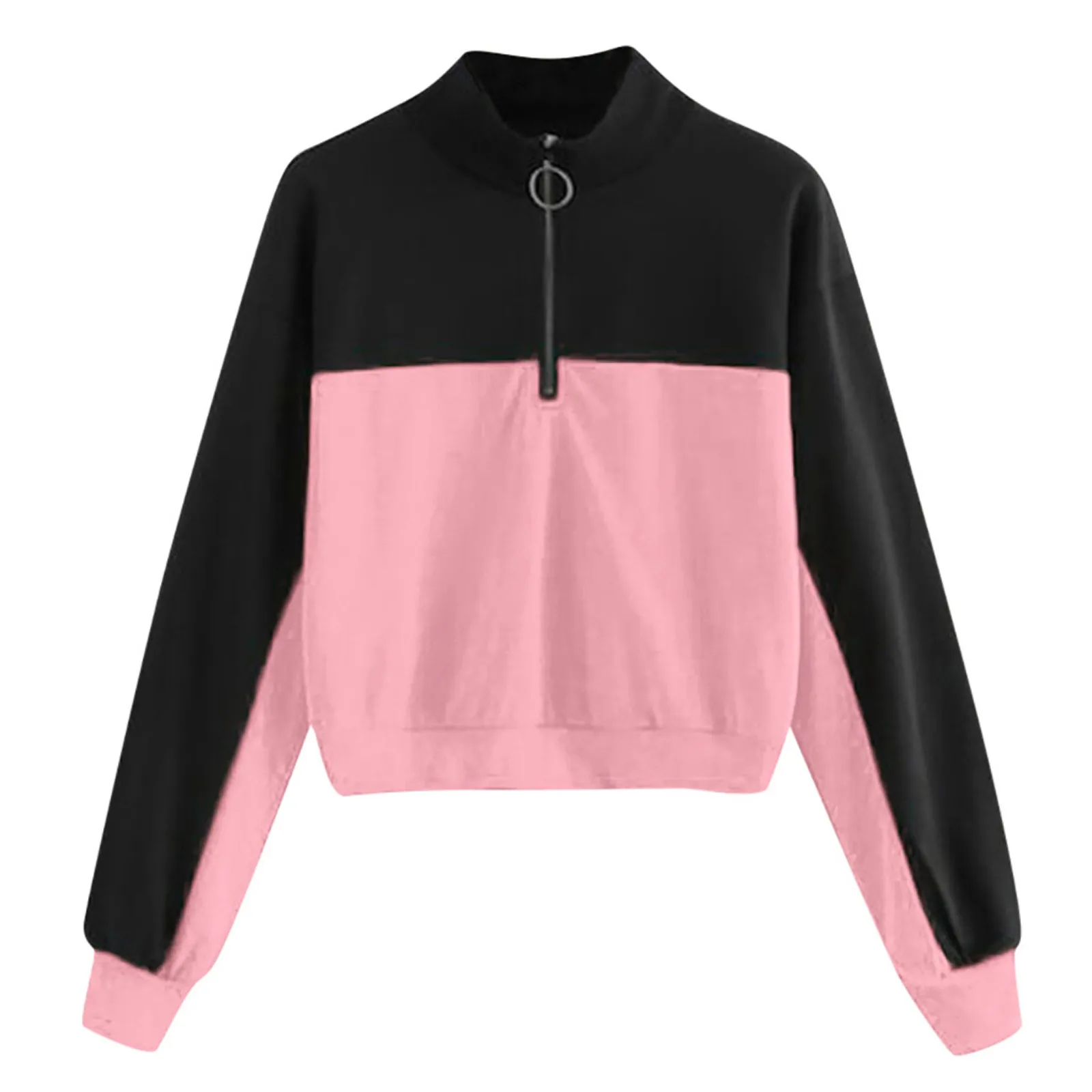 Женская толстовка, Повседневная однотонная Толстовка с длинным рукавом, на молнии, с капюшоном, укороченный топ, толстовка, Женская толстовка