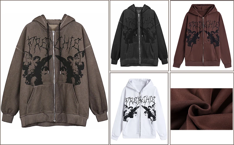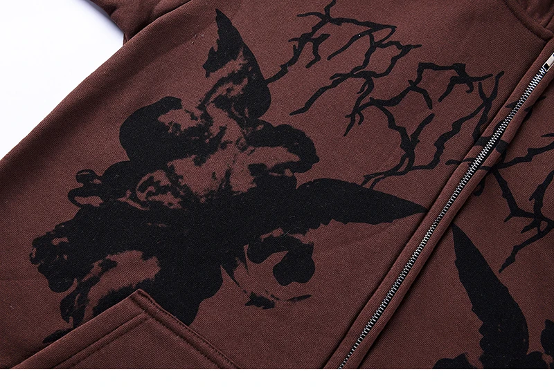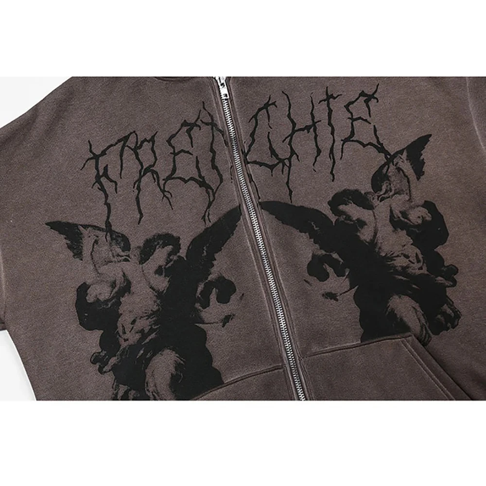 Толстовка с капюшоном для мужчин и женщин, свитшот на молнии с длинным рукавом, винтажный принт ангела, Готическая уличная одежда, пальто в эстетике Y2K, куртка с капюшоном, топ на осень