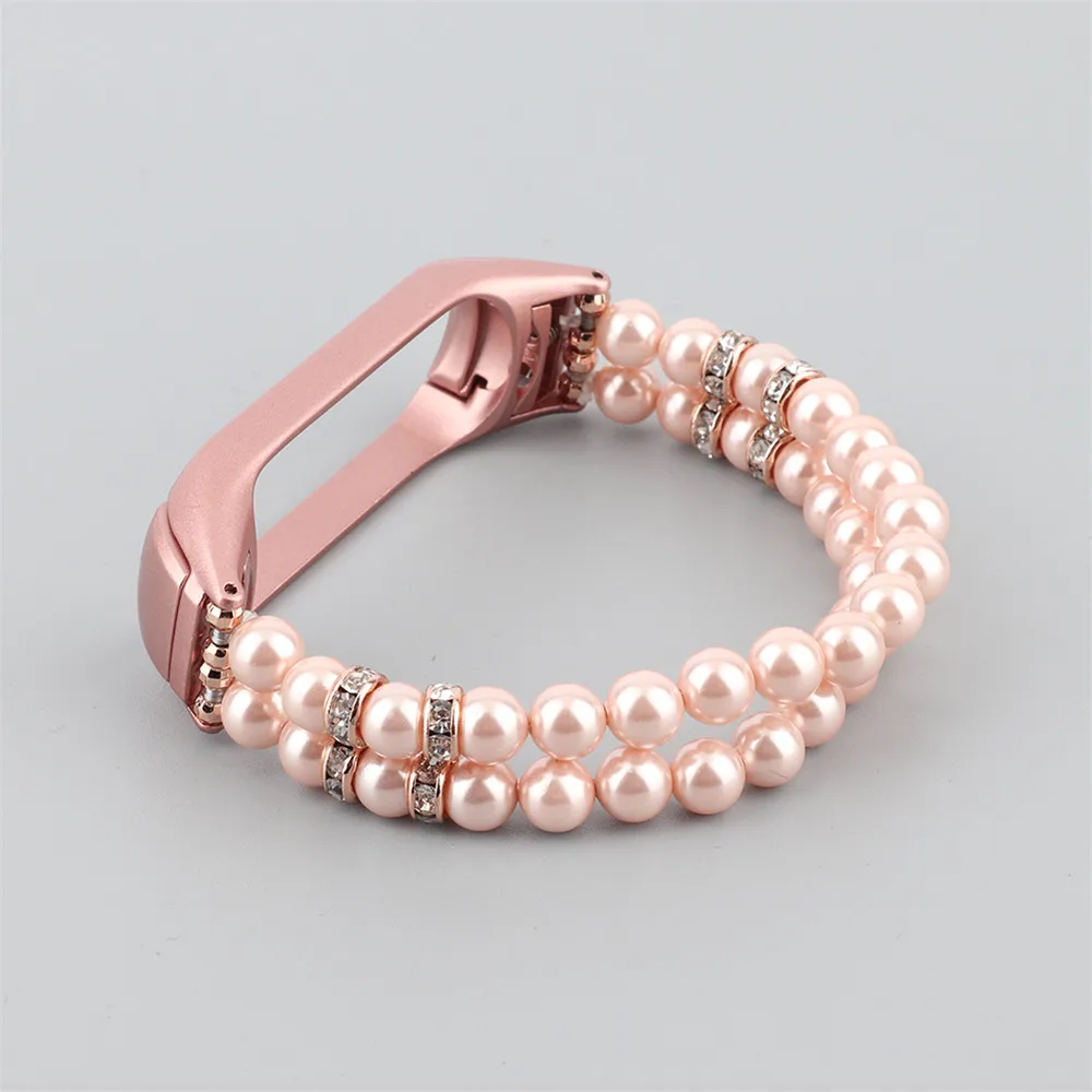 Двухрядный женский браслет с бусинами для Xiaomi Mi Band 6 5 4 3, ремешок для часов MIband, ювелирные изделия, эластичный ремешок на запястье