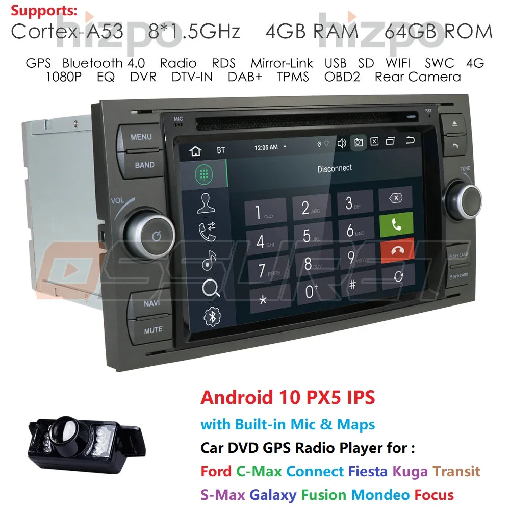 Andorid 10 IPS 2Din стерео автомобильный GPS-навигатор радио для FORD C-Max Fiesta Galaxy Transit Connect Fusion Focus Kuga Mondeo Player