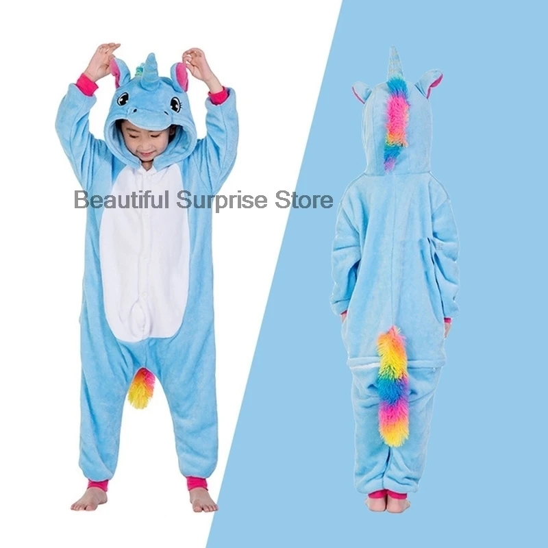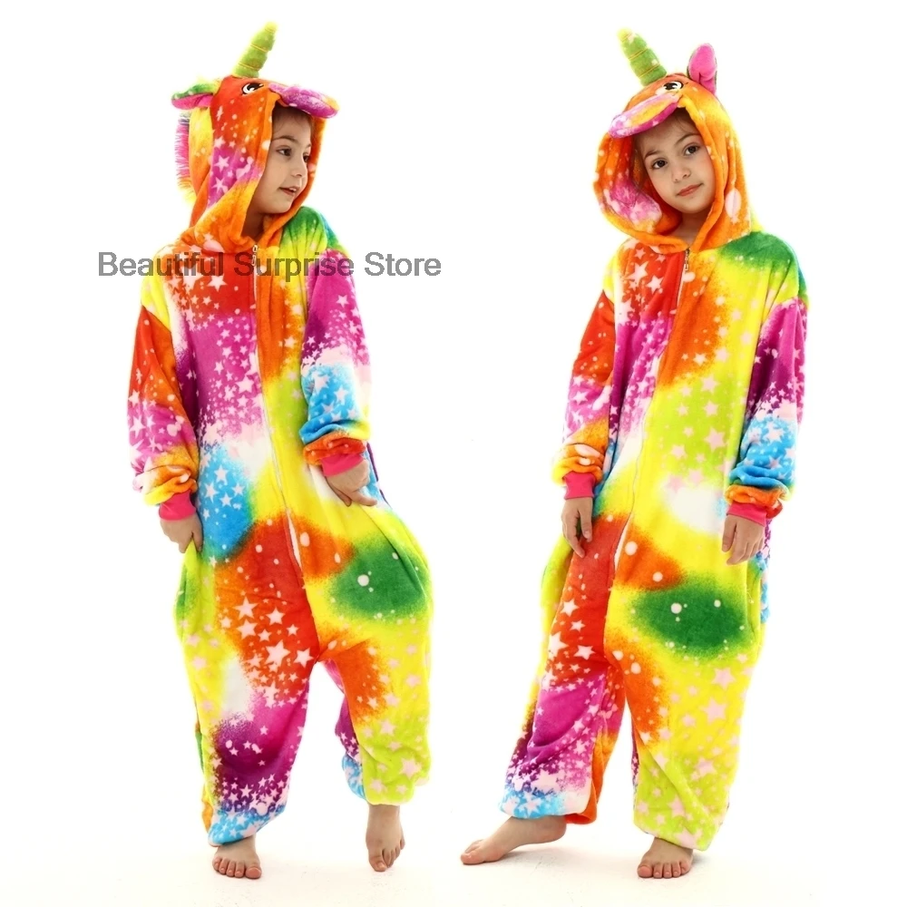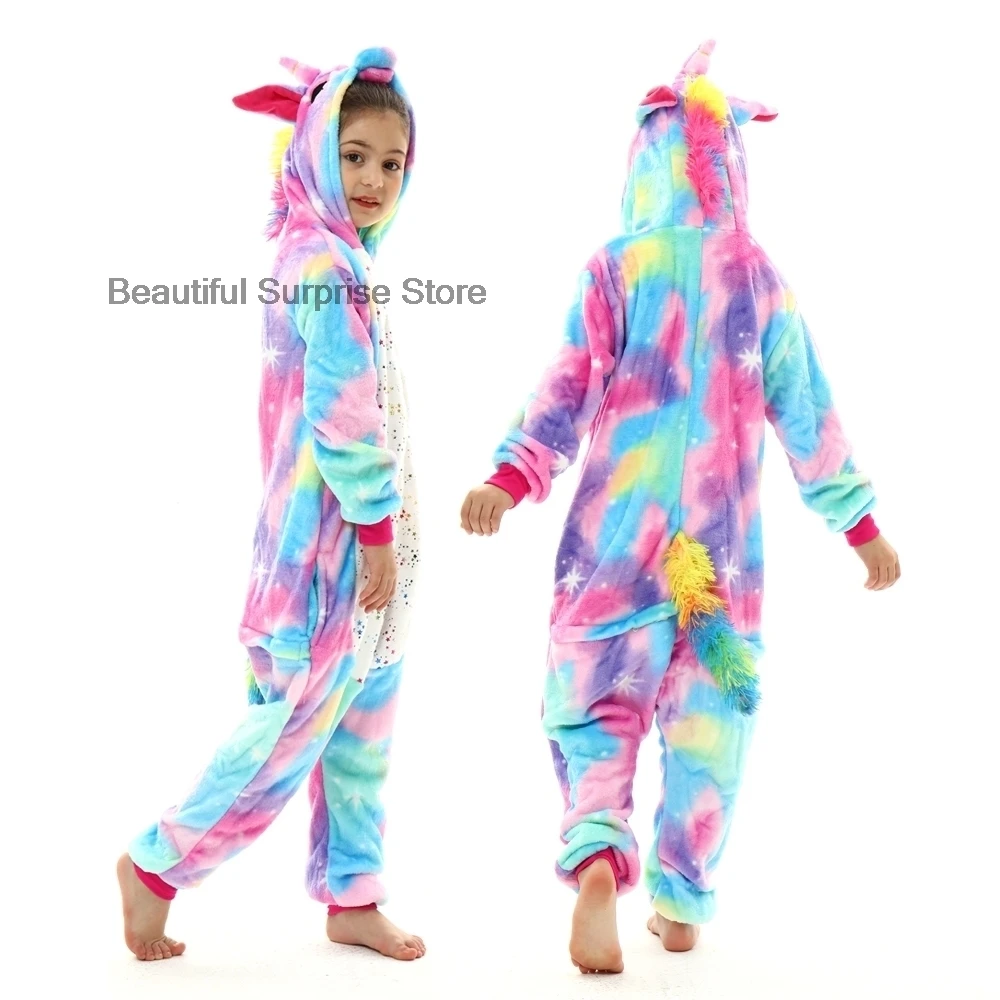 Детские пижамы-кигуруми в виде единорога для мальчиков, детские комбинезоны для косплея с животными, комплекты, одежда для сна, зимние пижамы для девочек, фланелевая теплая Пижама