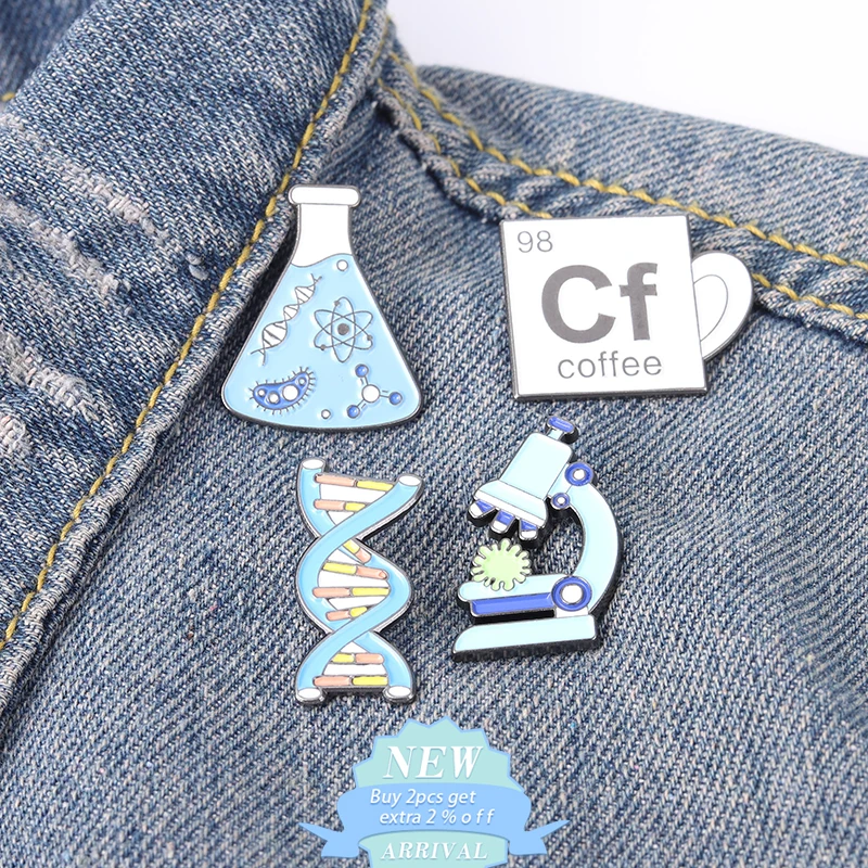 Эмалированная булавка для микробиологии ДНК, броши с колбой, кофейной чашкой, микроскопом, металлический значок для шляп и сумок, памятный подарок учителю по химической физике