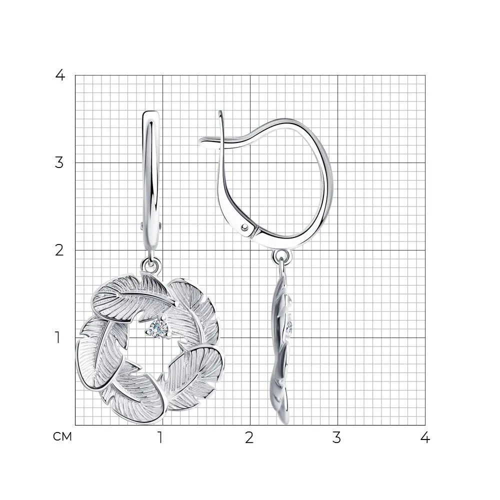 Серьги SKLV из серебра с фианитами, Серебро, 925, Женские, Серьги 2...