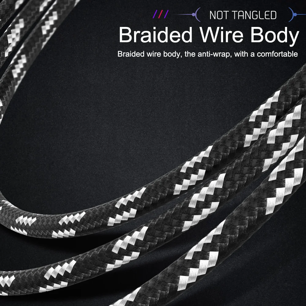 USB Type C кабель для Samsung A50 S21 Xiaomi нейлоновый Плетеный мобильный телефон Быстрая зарядка USB C кабель Type-C зарядное устройство провод 1 м 2 м 3 м