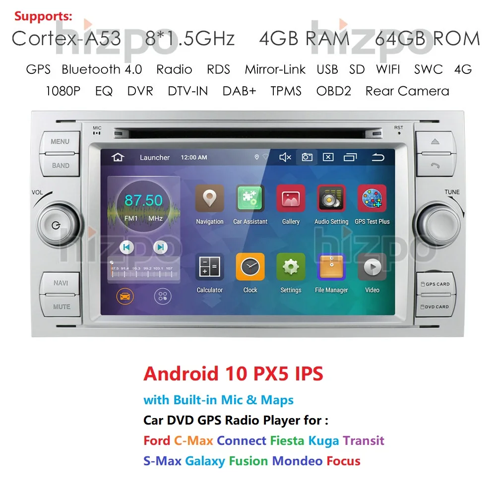 Автомагнитола PX5, мультимедийная стерео-система на Android, с GPS, DVD, для Ford Focus C S Max Connect Fiesta Kuga Transit Galaxy Fusion Mondeo