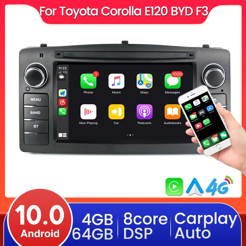 Автомагнитола на Android, 4 Гб ОЗУ, 64 Гб ПЗУ, с GPS Навигатором, для Toyota Corolla E120, BYD F3, типоразмер 2 Din