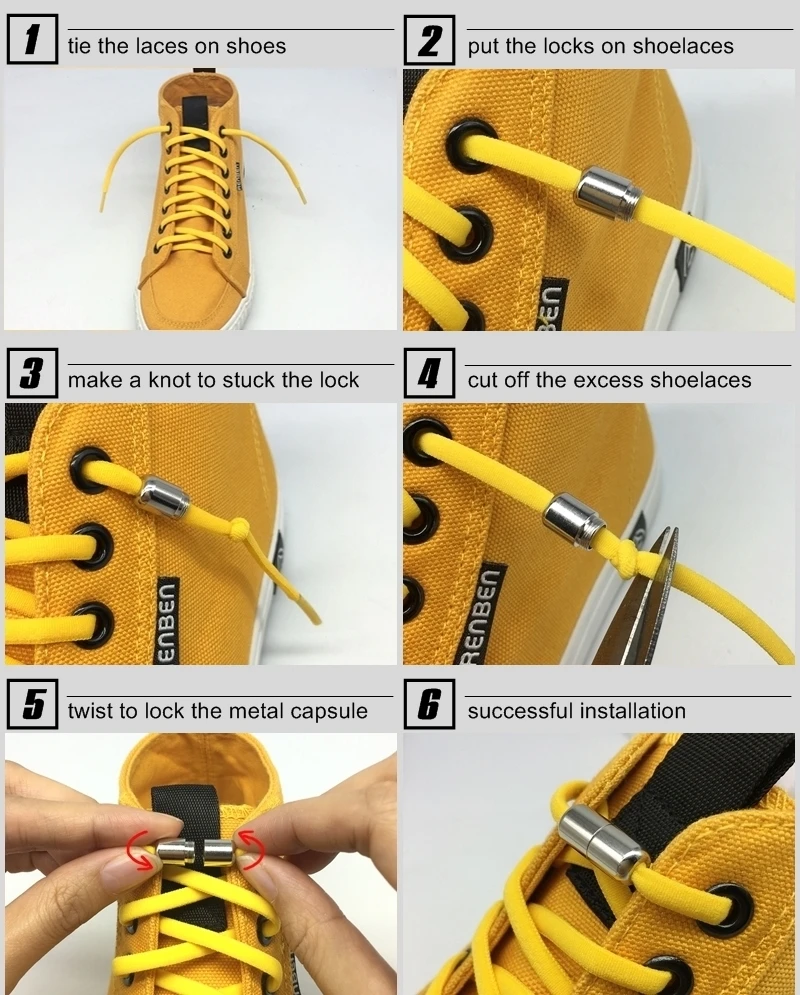 Этот вид системы шнуровки без галстука очень прост в использовании.Выполните следующие действия: