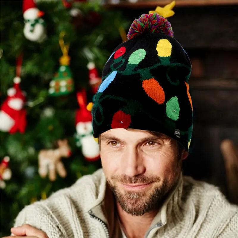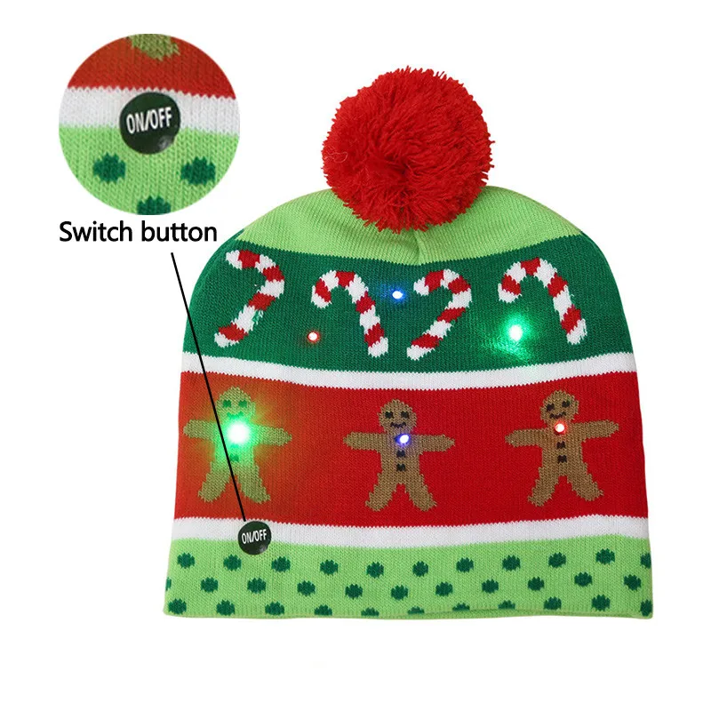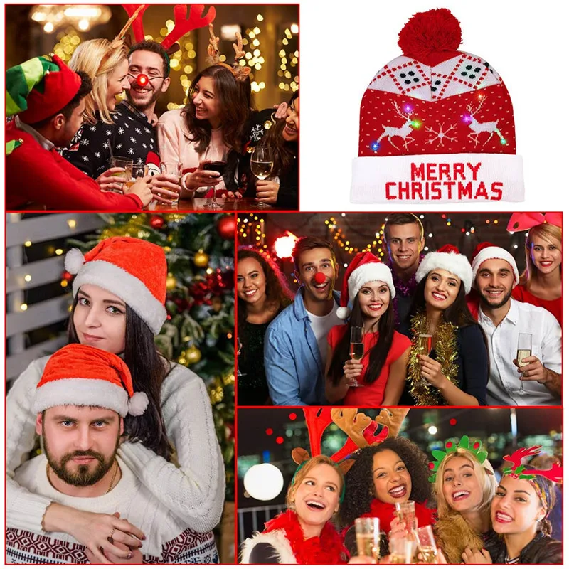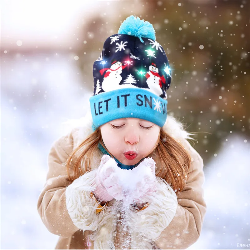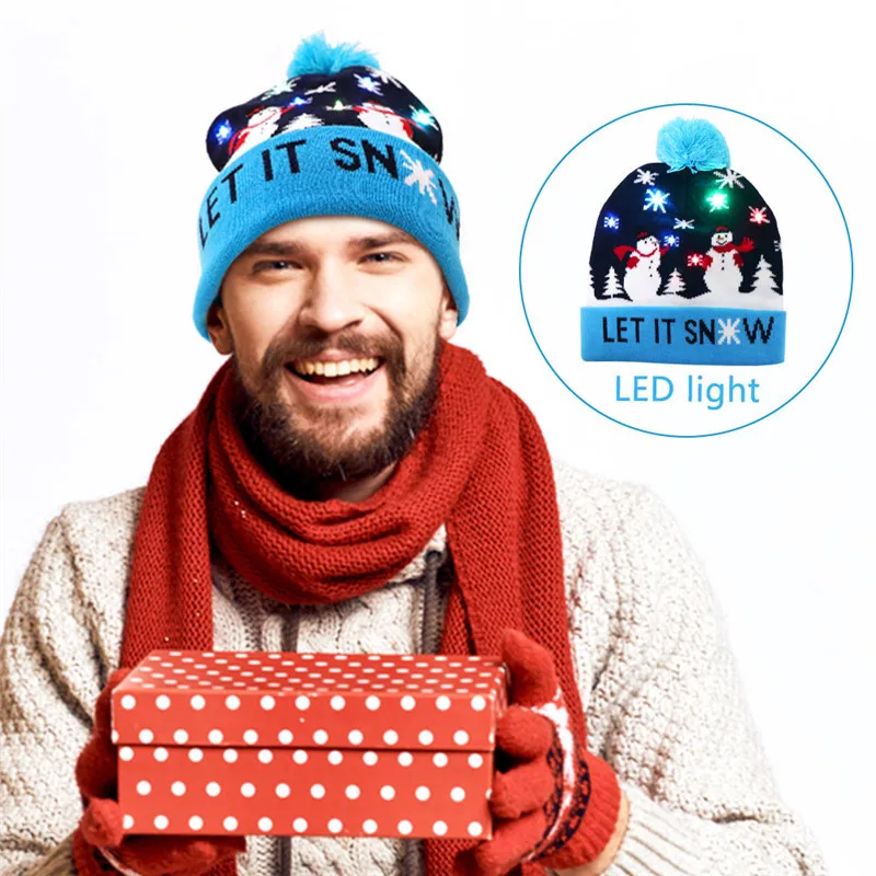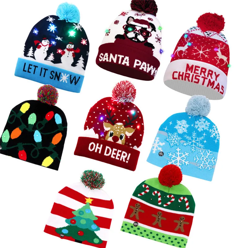Новогодние светодиодные шапки, рождественские шапки, Рождественская вязаная шапка с подсветкой для детей и взрослых, для рождественской вечеринки, облегающая шапка, свитер, вязаный 5, 2022