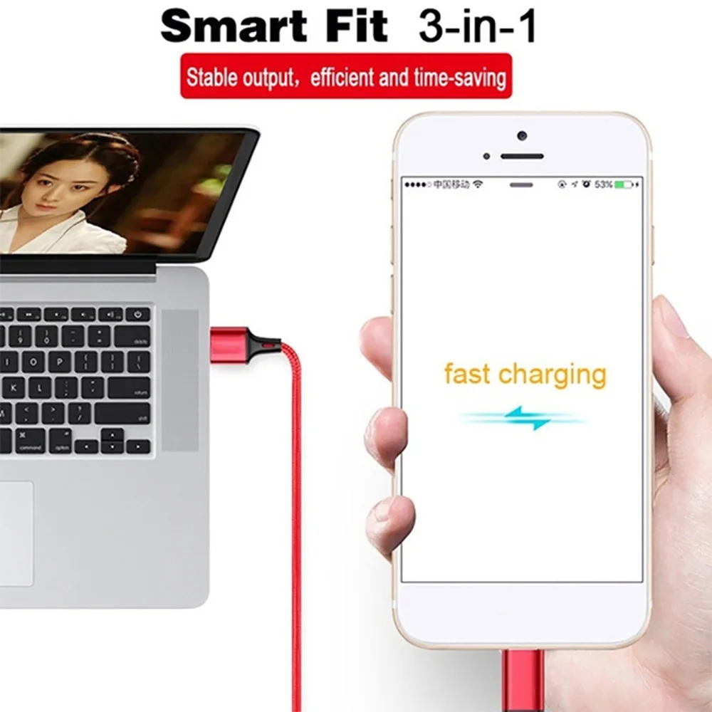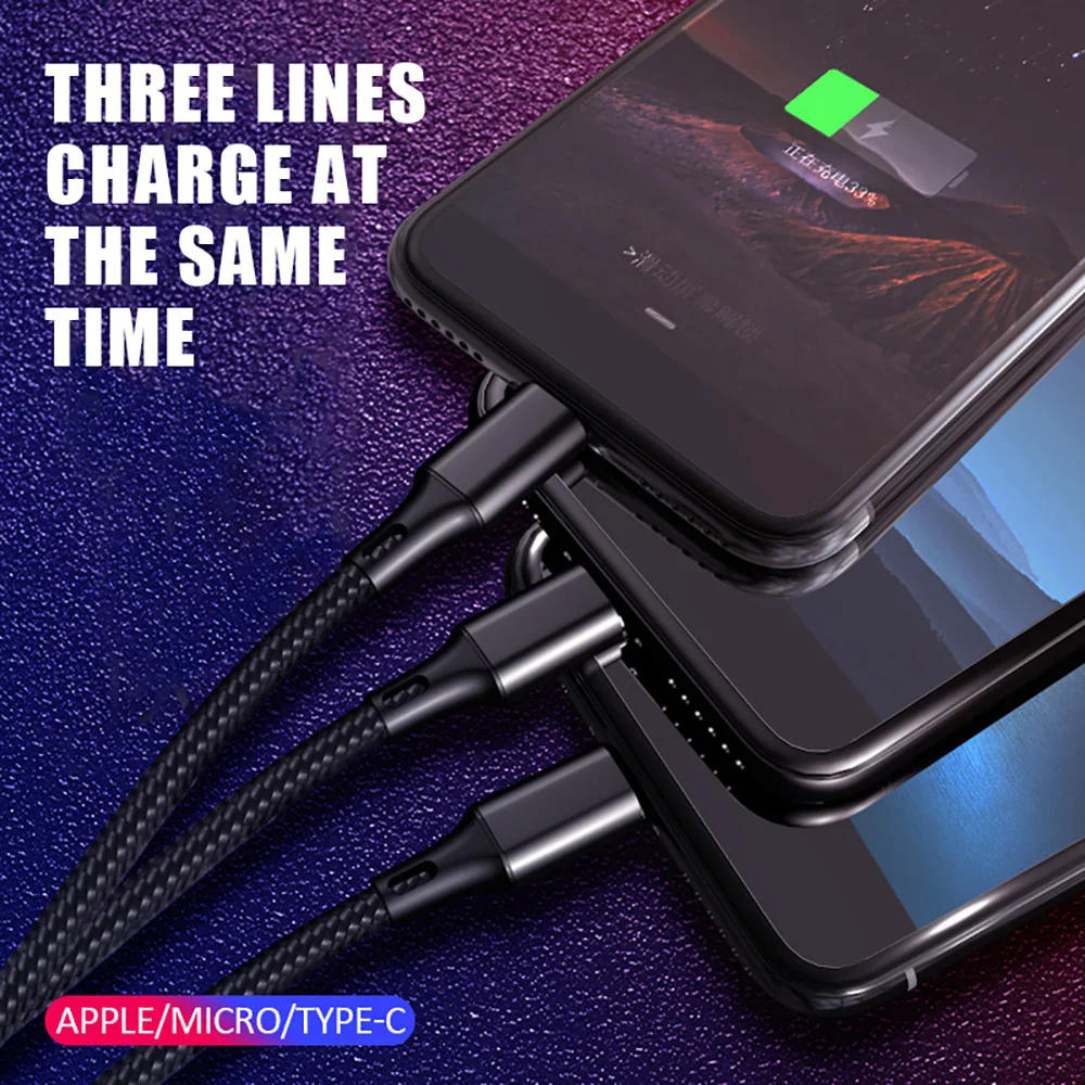 Кабель USB 3 в 1 для быстрой зарядки и передачи данных, для Ios, телефонов Android, xiaomi, huawei, Samsung, iPad