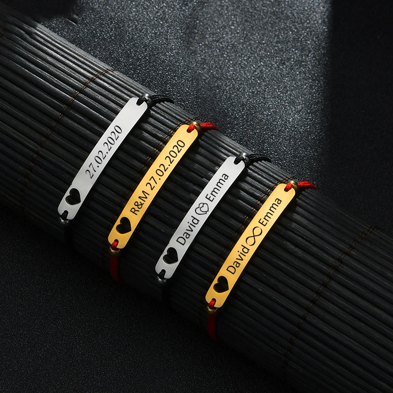Персонализированные браслеты с именами красных ниток для мужчин и женщин, мужчин, влюбленных, гравировка имени даты, нержавеющая сталь, сердце, ювелирные изделия на заказ