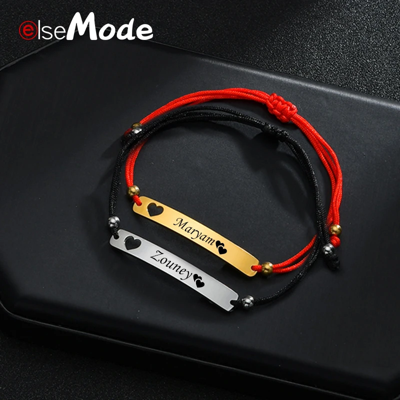 ELSEMODE, персонализированные браслеты с красными нитями для мужчин, женщин, мужчин, для влюбленных, гравировка с именем даты, из нержавеющей стали, с сердцем, ювелирные изделия на заказ