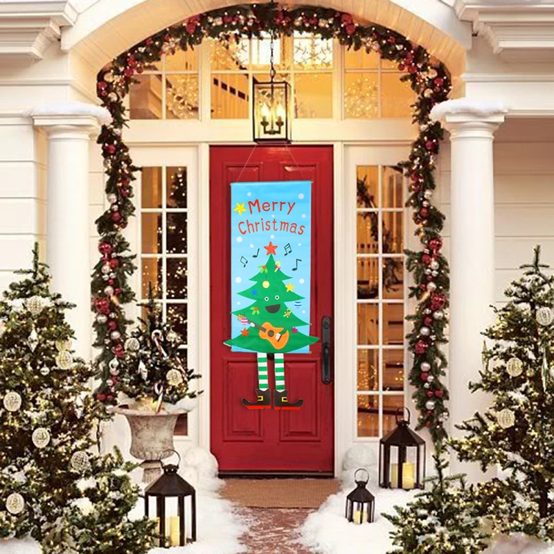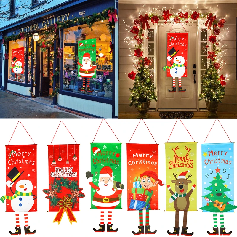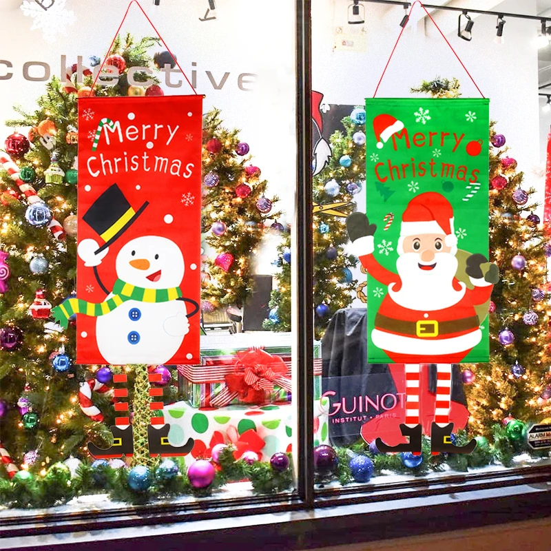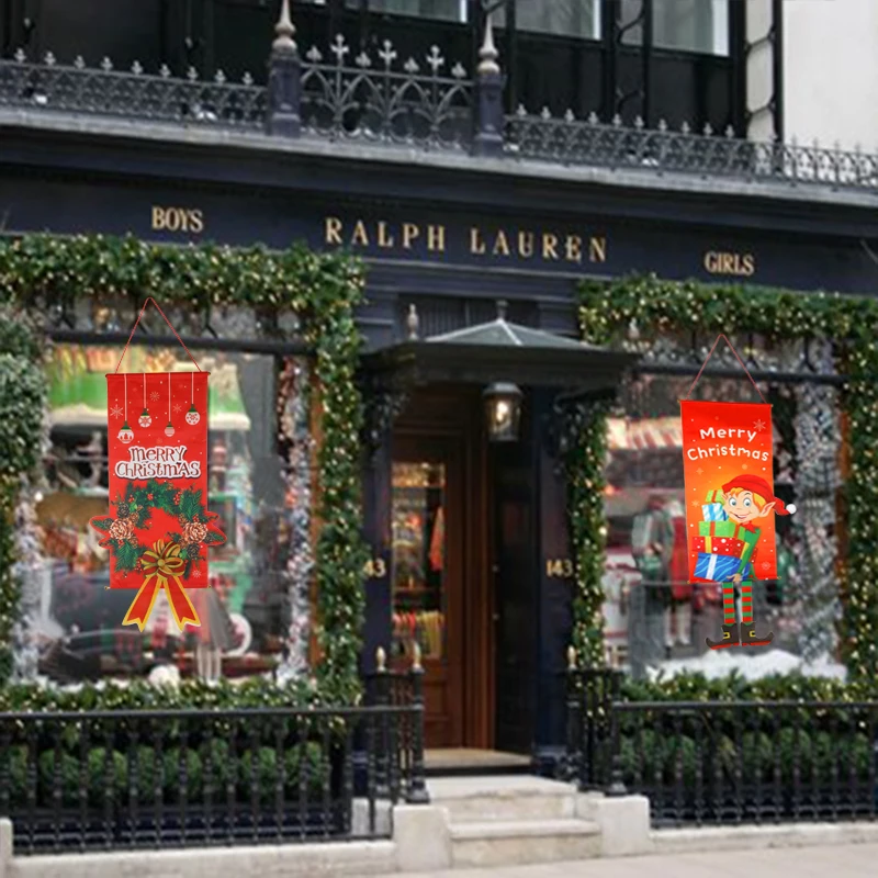 2021 Счастливого Рождества окна знак баннеры Рождественская Ткань флаг Двери крыльца декоративный баннер Рождественская домашняя дверь висит орнамент Noel