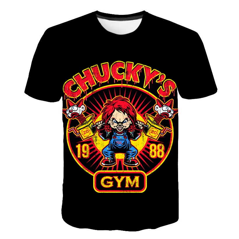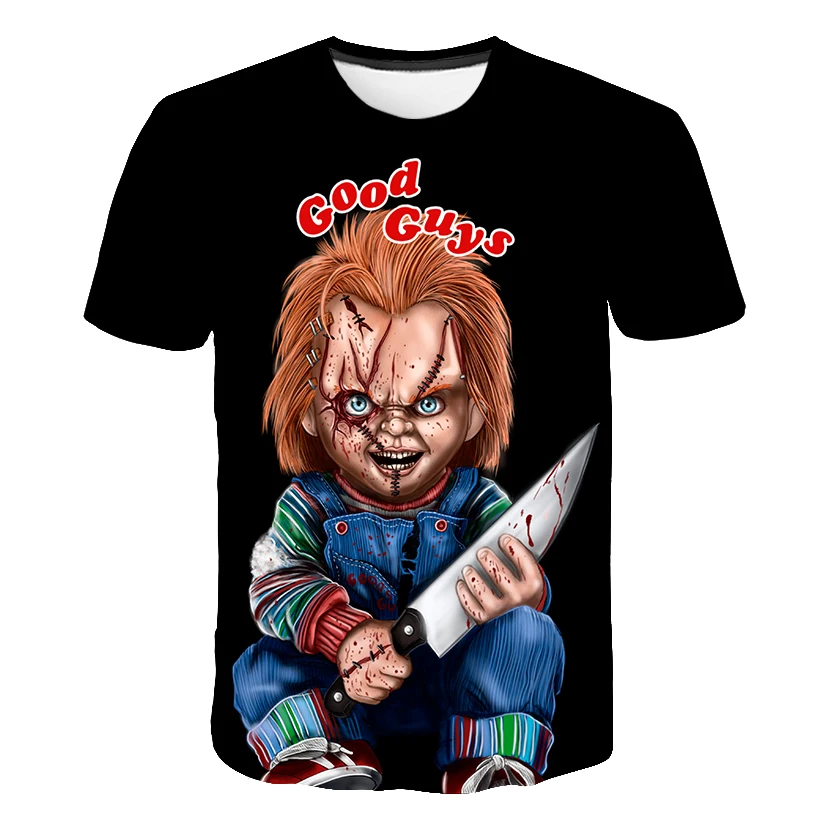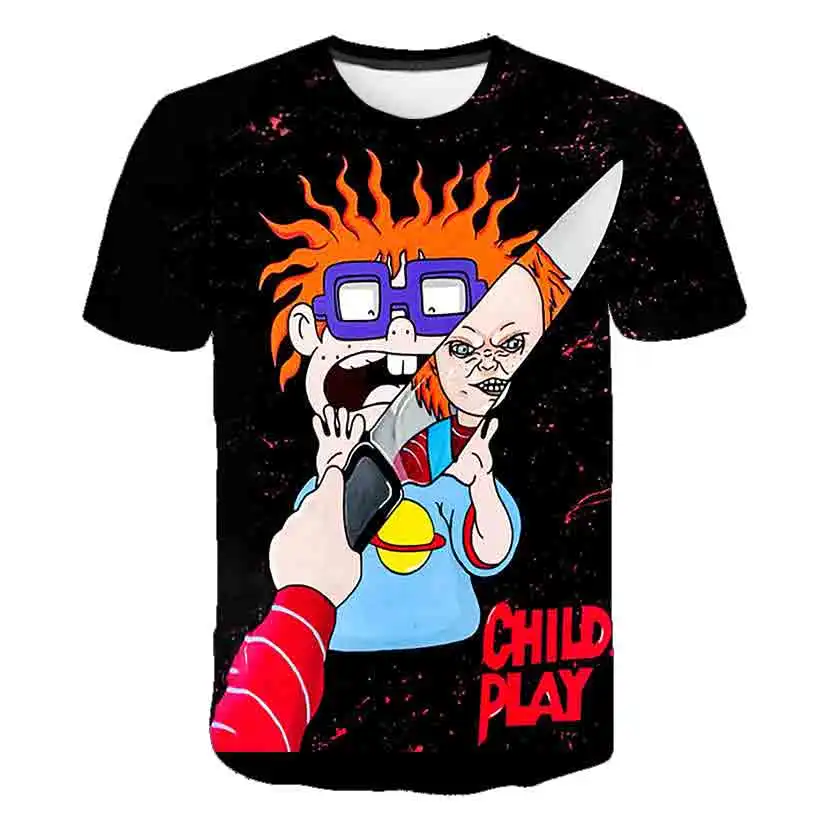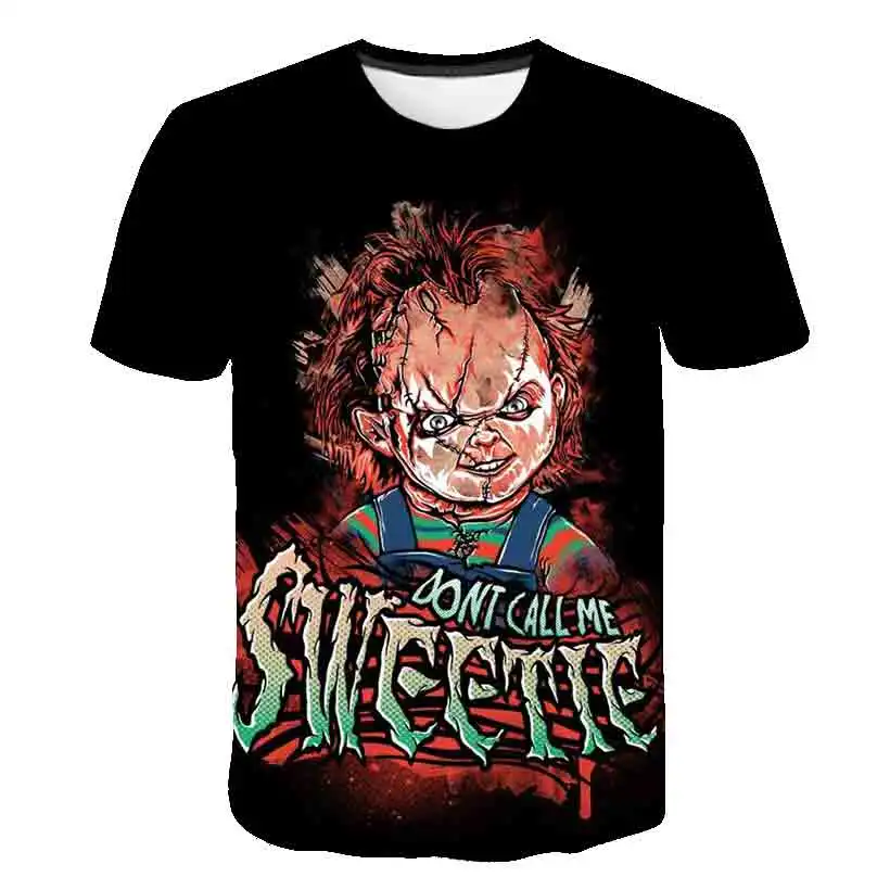 Новинка, Детская футболка с изображением призрачной куклы, детская 3D футболка с ужасами, топы с коротким рукавом для мальчиков и девочек, крутая уличная одежда для подростков