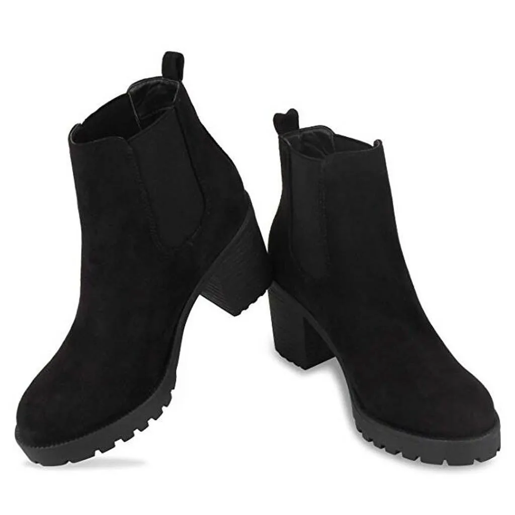 Модные женские однотонные ботинки на квадратном каблуке без шнуровки с круглым носком, женская обувь, ботинки, женские ботинки # G40