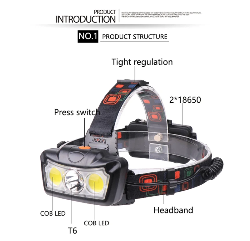 Светодиодный налобный фонарь XM-L T6 COB, водонепроницаемый налобн...