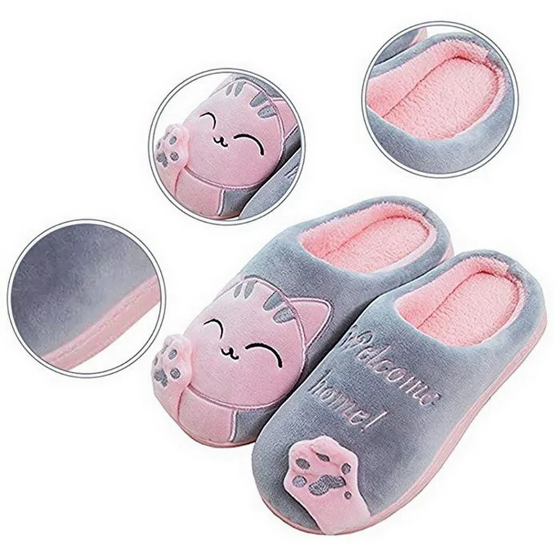 Теплые зимние тапочки с мультяшным котом для женщин и мужчин, Неско...