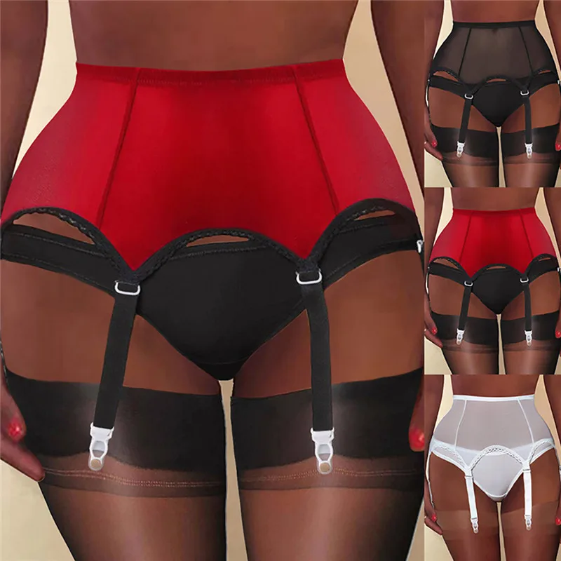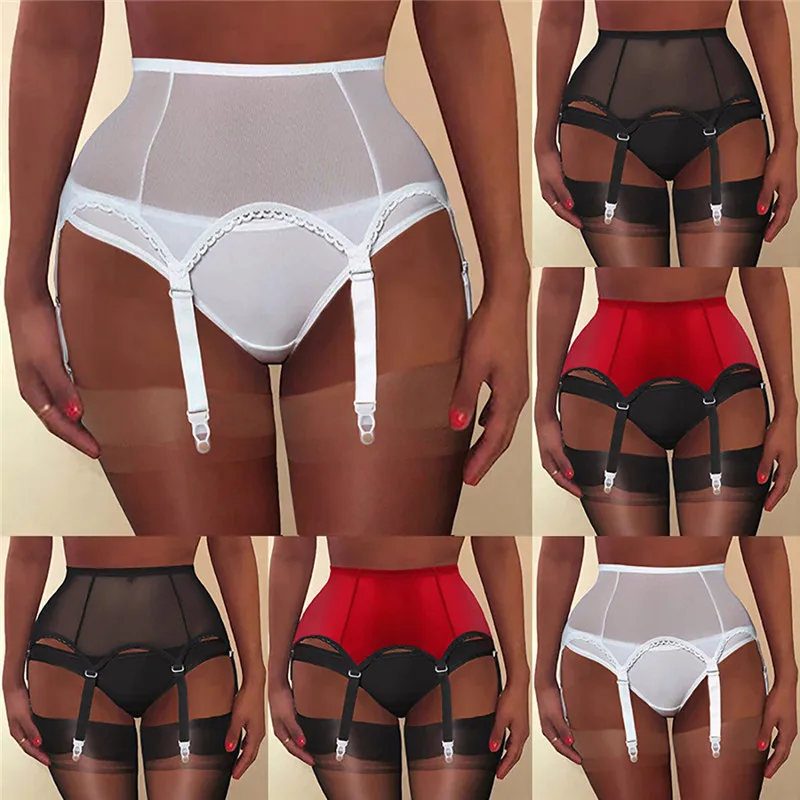 Женский сетчатый пояс для чулок с высокой талией, 4 ремешка, эластичный пояс для чулок, эротическое белье, подвязки для чулок