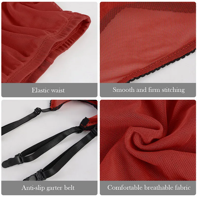 Особенности:Посылка включает в себя: женские подвязкиРазмер: S-5XLМатериал: полиэстерТип: твердыйЖенский сетчатый подвязочный пояс с высокой талией, 4 ремешка, эластичный пояс на подтяжках, эротическое белье, подвязки, колготки, чулки.