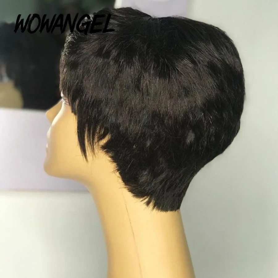 Парики без клея, парики из человеческих волос с коротким вырезом, естественный черный цвет, бразильские волосы без повреждений для женщин, парик с челкой полностью машинной работы