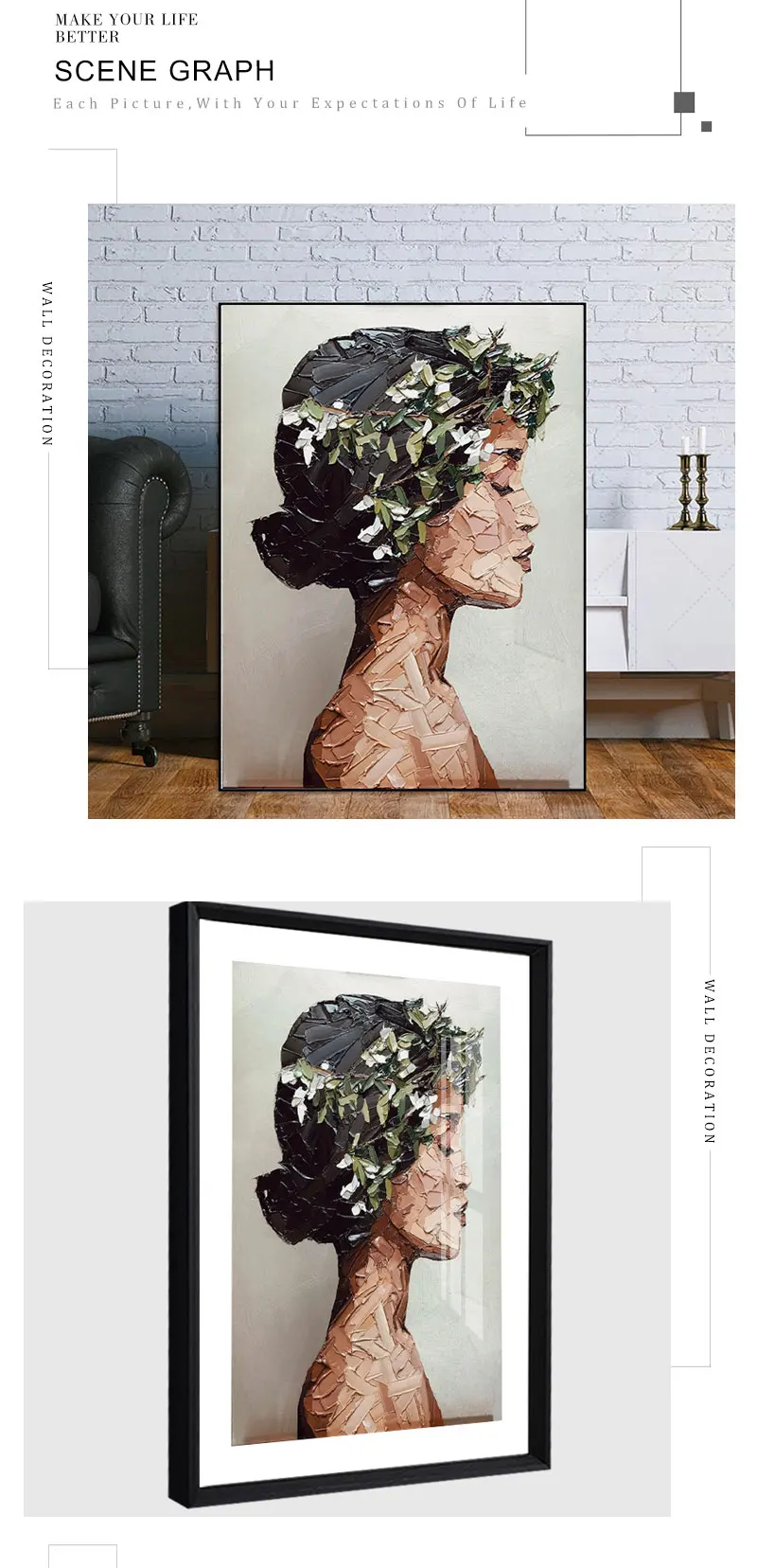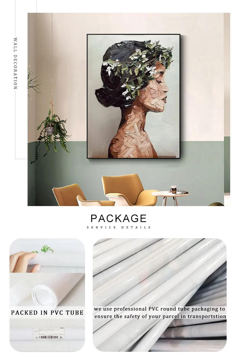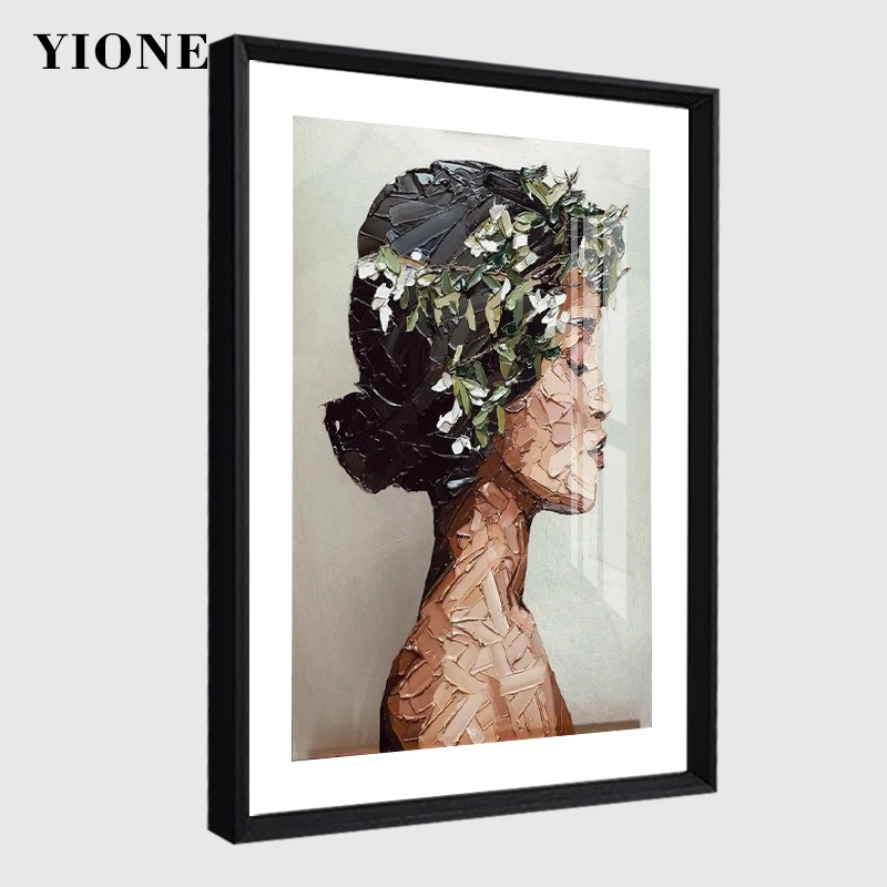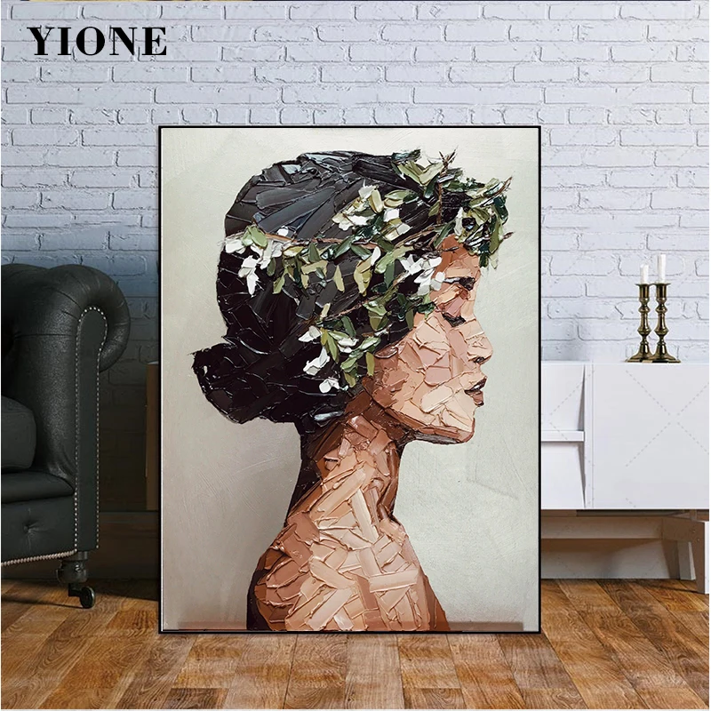Портрет женщины с зелеными листьями, картина маслом на холсте, абстрактная фигурка, плакат с обнаженной девушкой, Настенная картина, печать, украшение гостиной