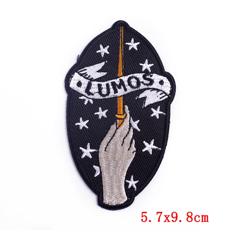 10 шт., оптовая продажа, панковские нашивки Lumos, вышитые нашивки для футболки, одежда, волшебная палочка, железные нашивки на одежде, значки, наклейки
