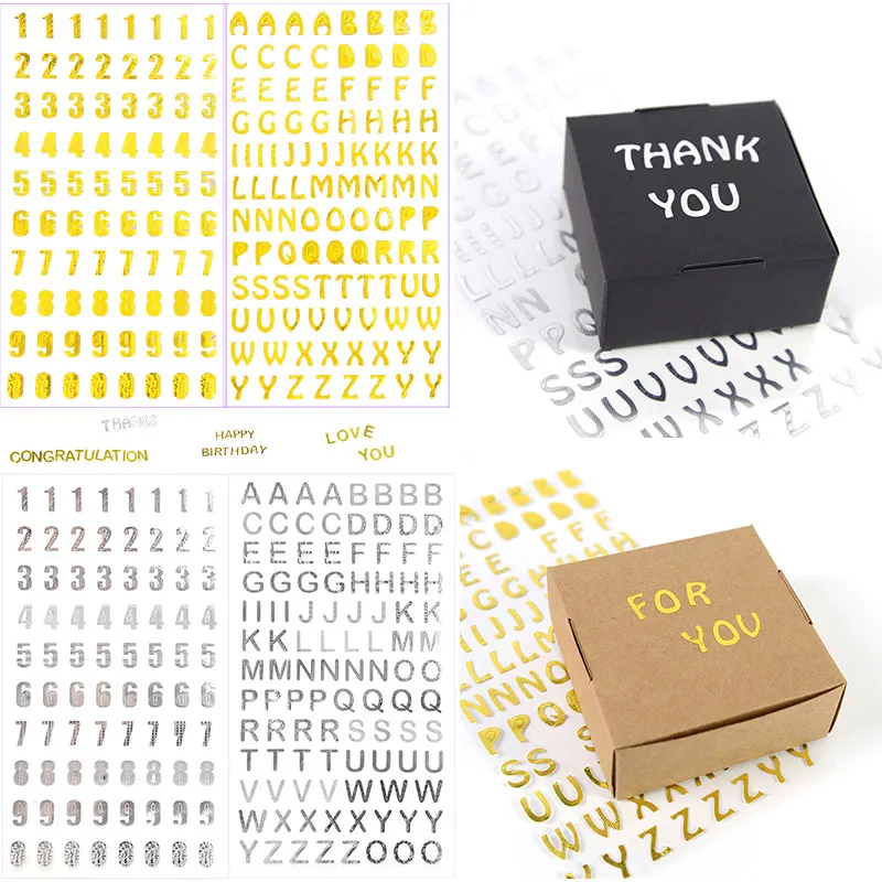 3 листаЛот, 18*9,7 см, золотые и серебряные наклейки с цифрами и буквами, наклейки сделай сам для блокнота, Подарочные наклейки, ярлыки, альбом для стикеров, товары