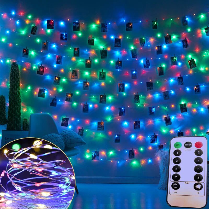 Светодиодная гирлянда на вечерние ринку, Рождество, украшение с дистанционным управлением, USB, свадебная гирлянда, занавеска для праздника, Сказочная уличная гирлянда