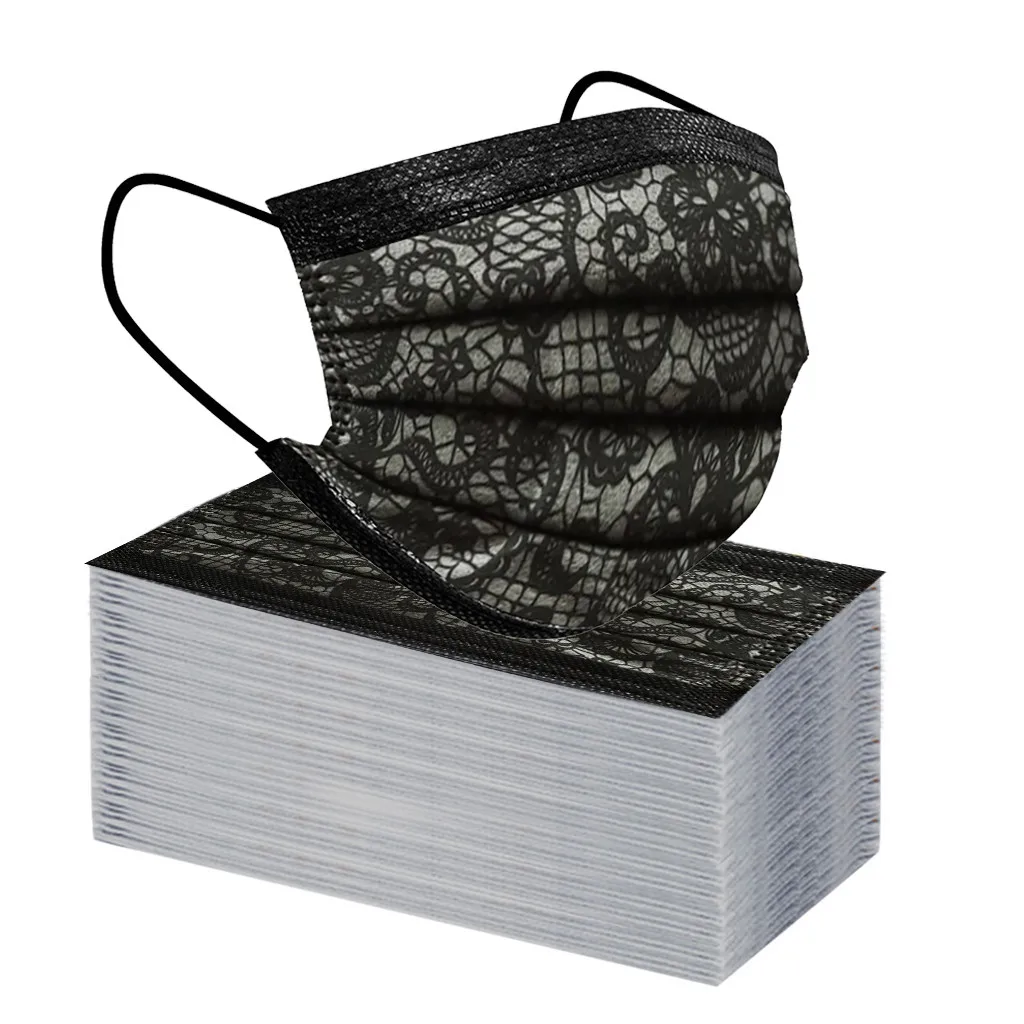 50 шт., маска для взрослых, Черная кружевная маска, одноразовая трехслойная маска для Хэллоуина, косплея, маска для лица Mondkapjes Mascarilla