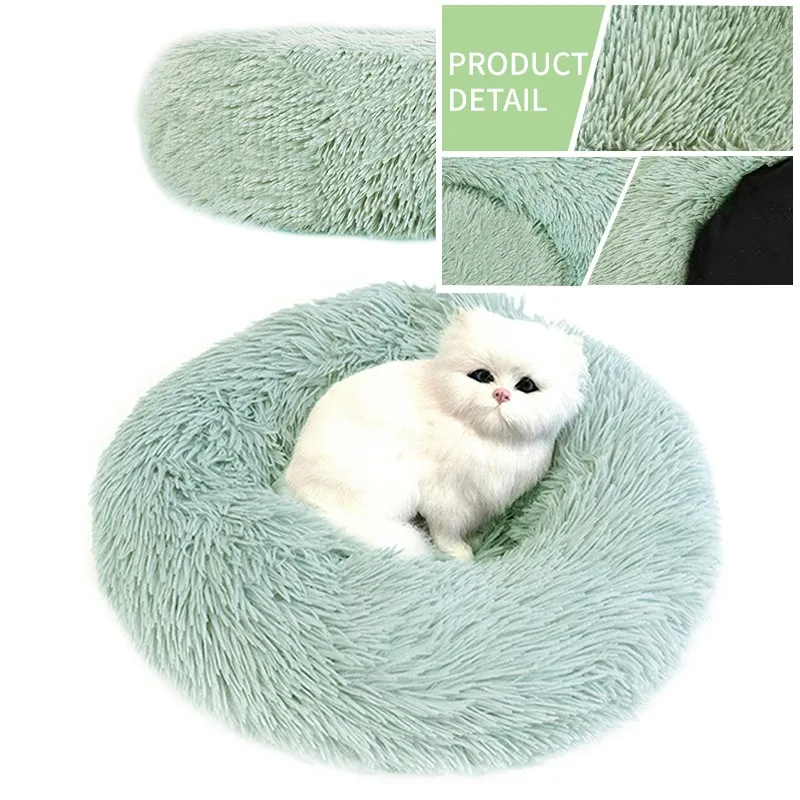 Длинная плюшевая кровать для кошек, мягкая круглая кровать, зимние ...