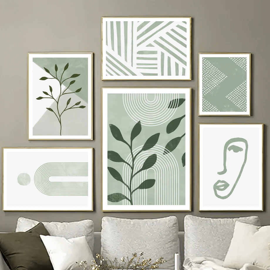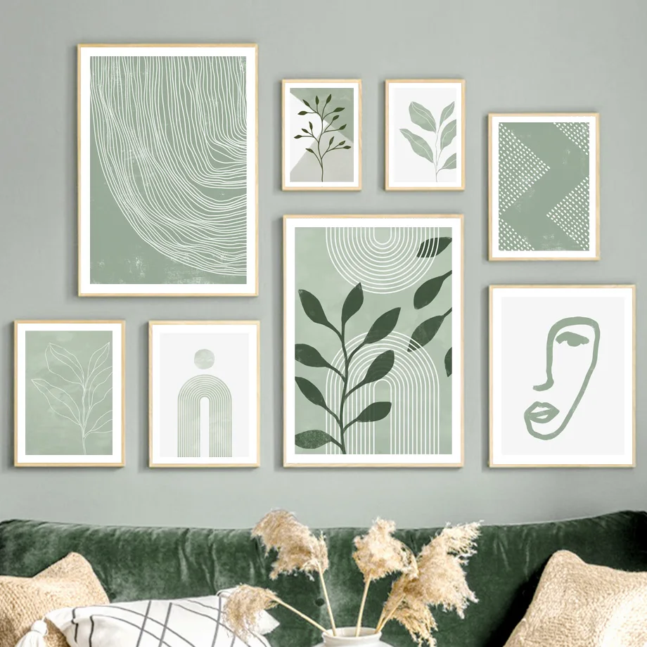 Зеленые абстрактные линии растения листья цитаты настенная живопись...
