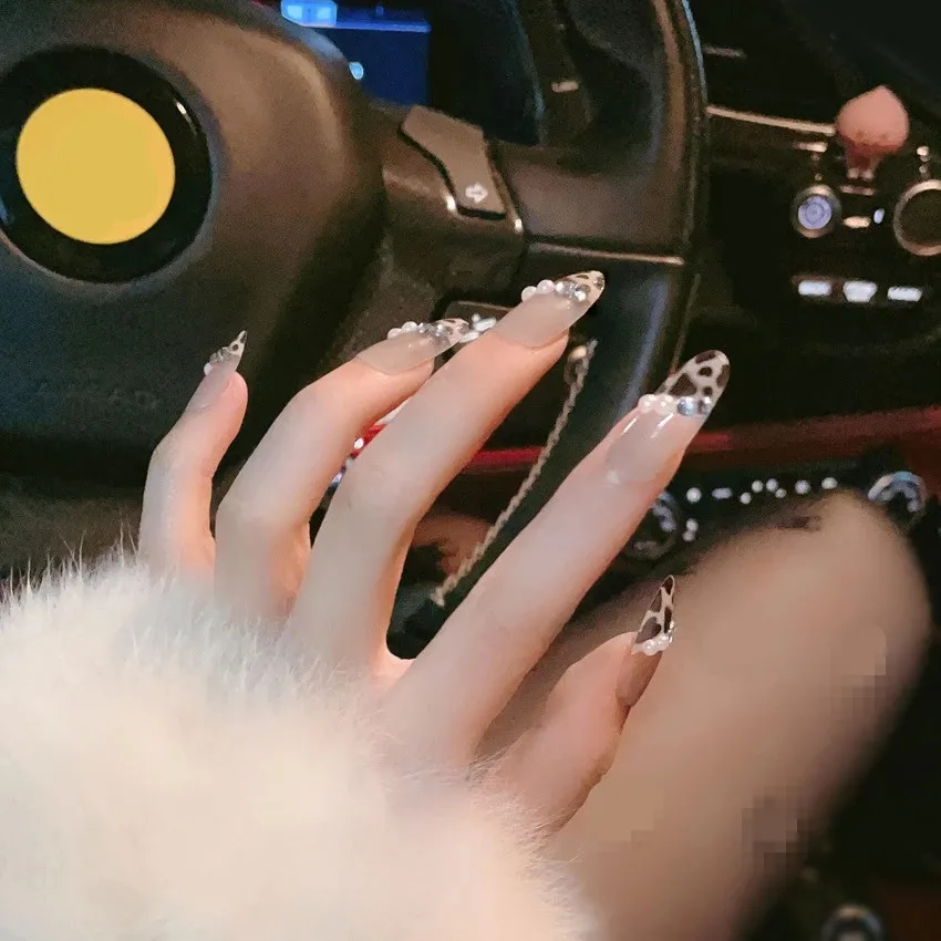 3D бриллиантовый жемчуг телесный французский балерина гроб Леопард полное покрытие искусственные ногти длинный поддельный пресс на 24 шт. Акриловые искусственные женские