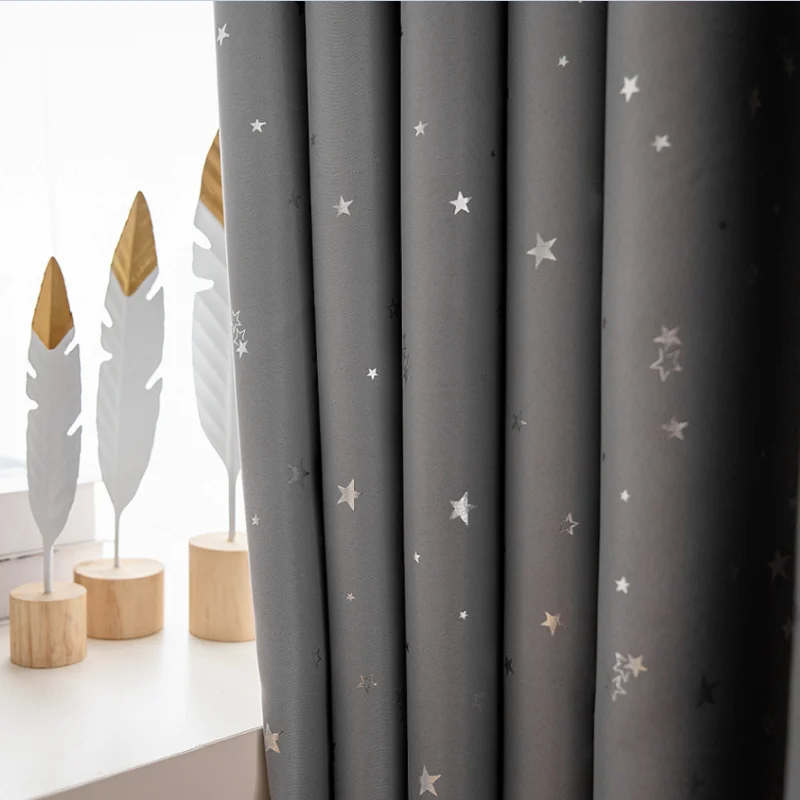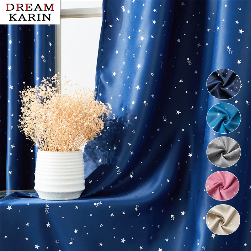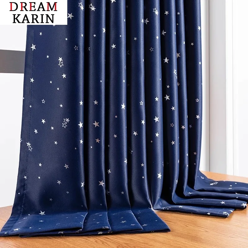 Современные светонепроницаемые шторы для гостиной, детской спальни, темно-синие оконные шторы с принтом звезд для детской обработки, готовые