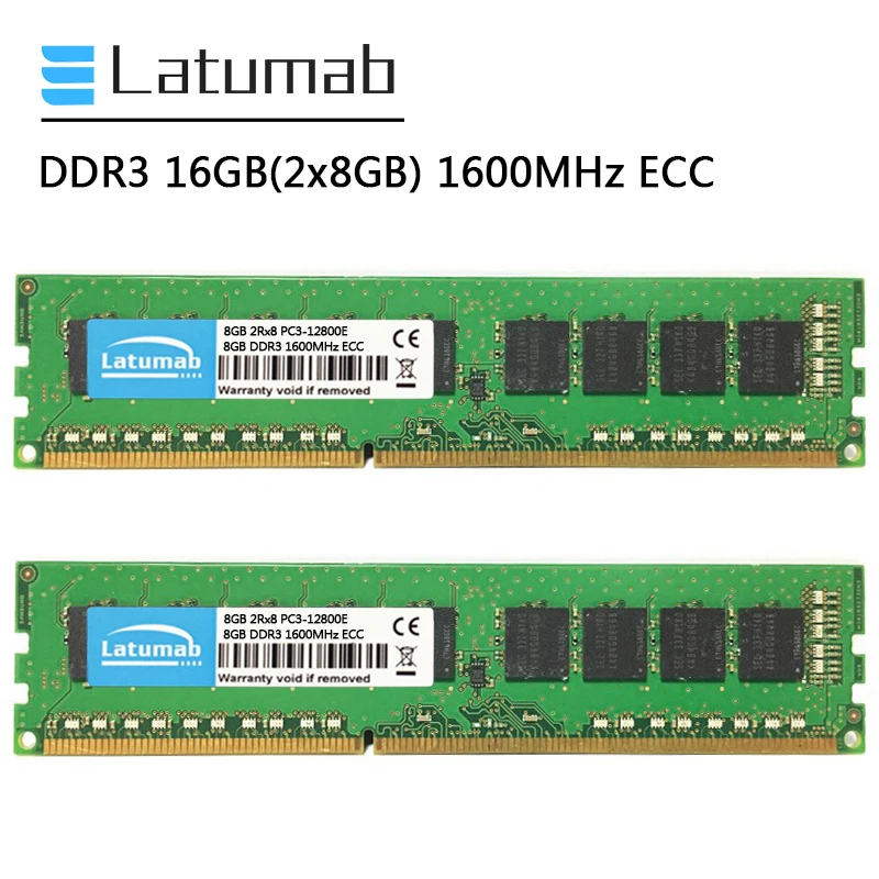 Latumab Memoria Оперативная память DDR3 16GB (2x8 ГБ) 1600 МГц рабочее место памяти 240Pin ECC UDIMM PC3-12800E 1,5 V DDR3 Оперативная память ECC Unbuffered памяти
