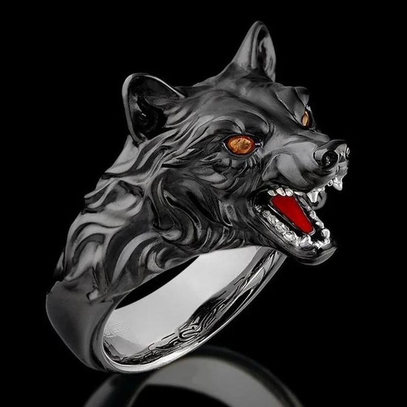 Элегантная мужская мода Черный скандинавская мифология Гигантский волк Фенрир Этнический стиль Амулет Ювелирные изделия Бойфренд Подарок на Хэллоуин Для мужчин Хип-хоп Волк викинга Кольцо из нержавеющей стали Кольцо в