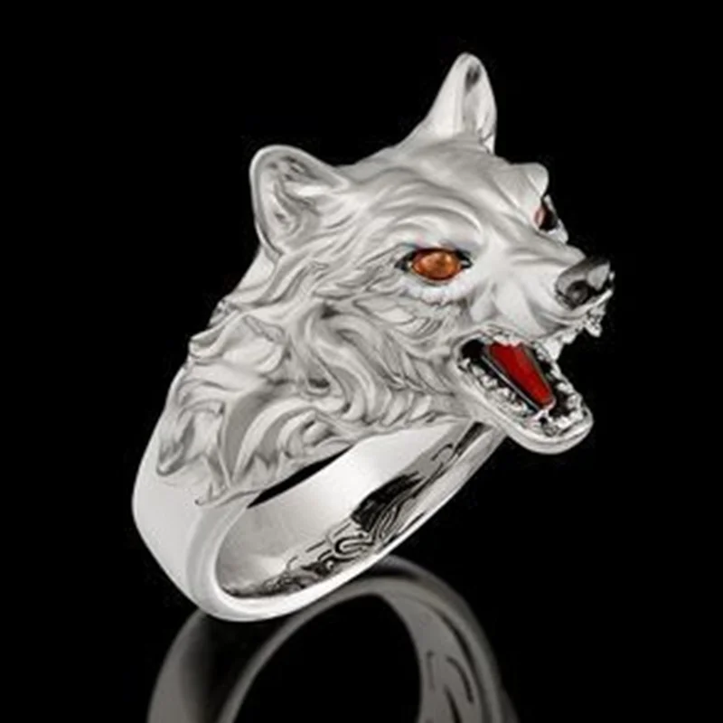 Кольцо с кристаллами и волком, кольцо с драгоценным камнем, милое ж...