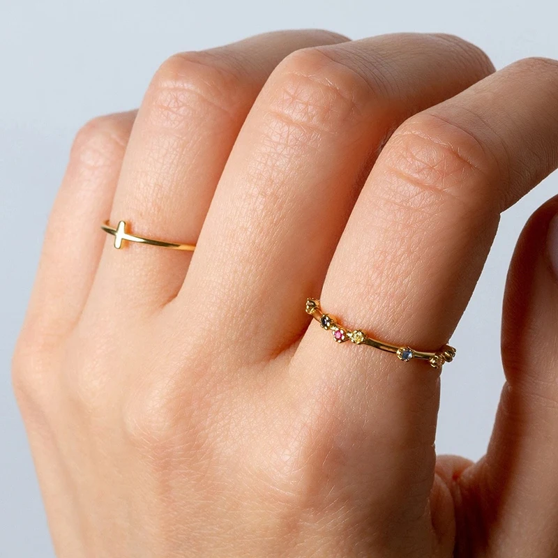 Women JewelryMinimalist Thin Circle Gem Rings Jewelry Carving S925