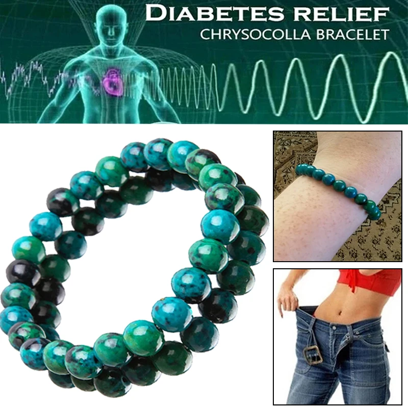 Браслет Chrysocolla браслеты из малахитовых бус для пары женщин и мужчин, бусины из натурального камня, ювелирные изделия ручной работы круглой формы с изображением диабета