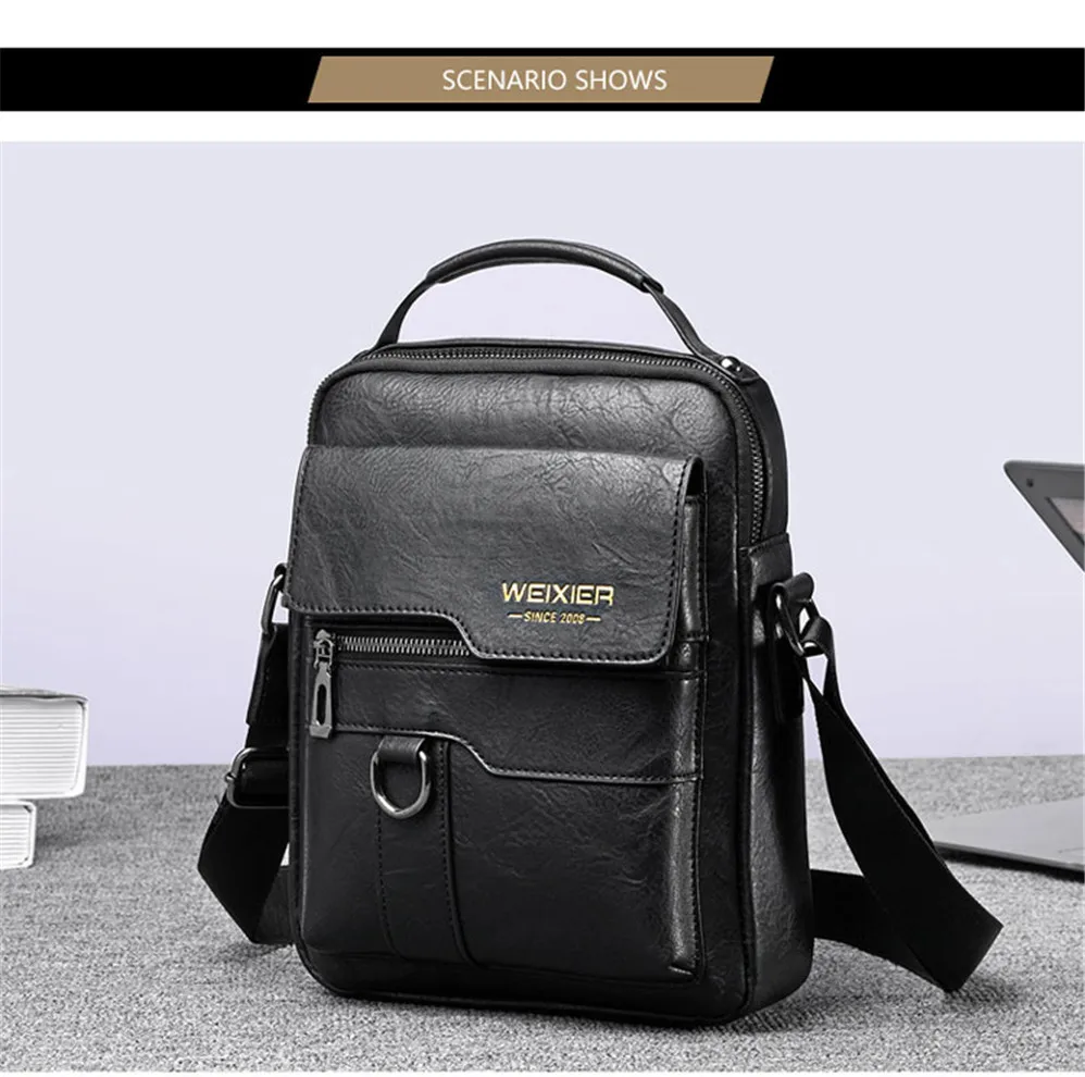 Сумка кросс-боди мужская из искусственной кожи, саквояж на молнии, вместительный чемоданчик, мессенджер, тоут