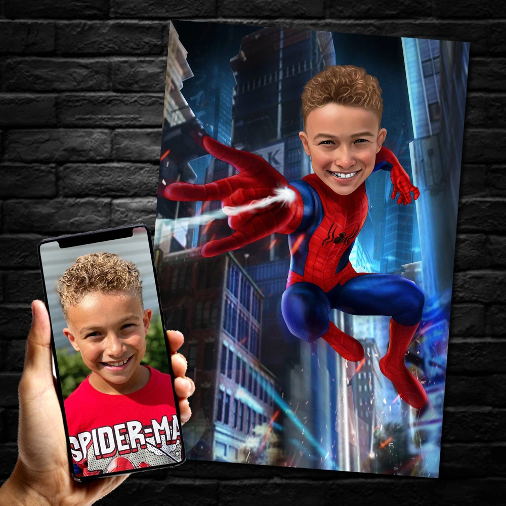 Персонализированный постер Marvel мстители, персонализированный портрет человека-паука, печать на холсте, персонализированный настенный постер супергероя, декор для комнаты, подарок на день рождения